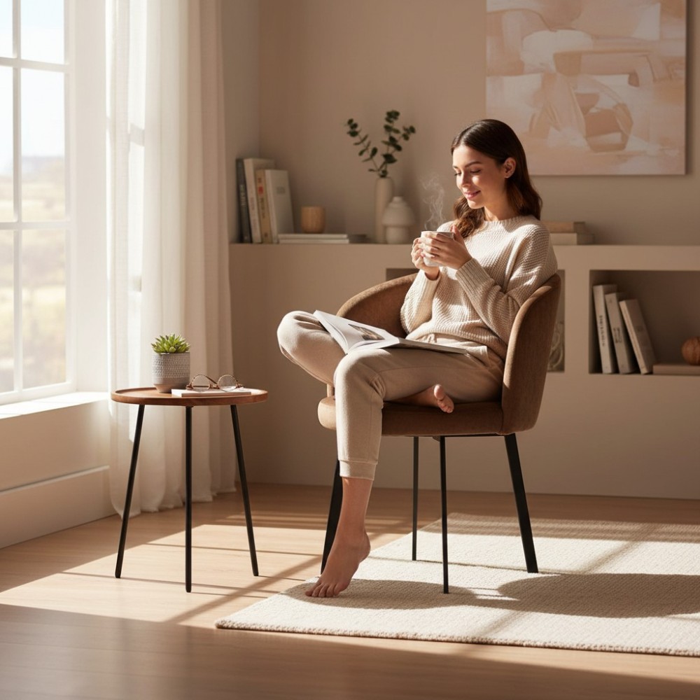 Округлая спинка плавно охватывает корпус, создавая ощущение мягкой поддержки. Такая форма способствует расслабленной посадке, обеспечивая удобство во время длительных разговоров, обедов или отдыха.