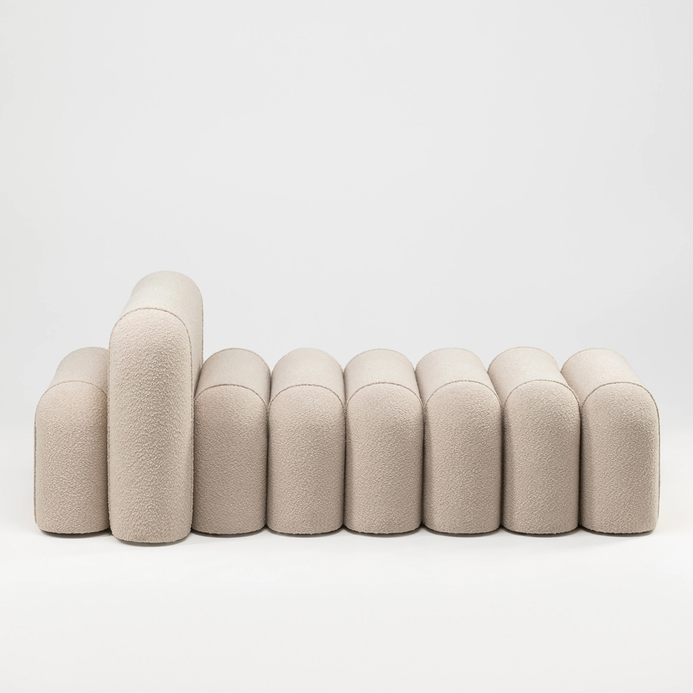 Диван Puffa M2 являє собою вишукане поєднання семи сегментів для сидіння і одного великого сегмента-спинки, що в комбінації створює сучасний і лаконічний силует. Цей диван ідеально підходить для тих, хто прагне мінімалізму з функціональною розкішшю в кожній деталі. Він може слугувати як самостійним об'єктом, так і ключовим елементом у комплекті з іншими м'якими елементами системи Puffa.