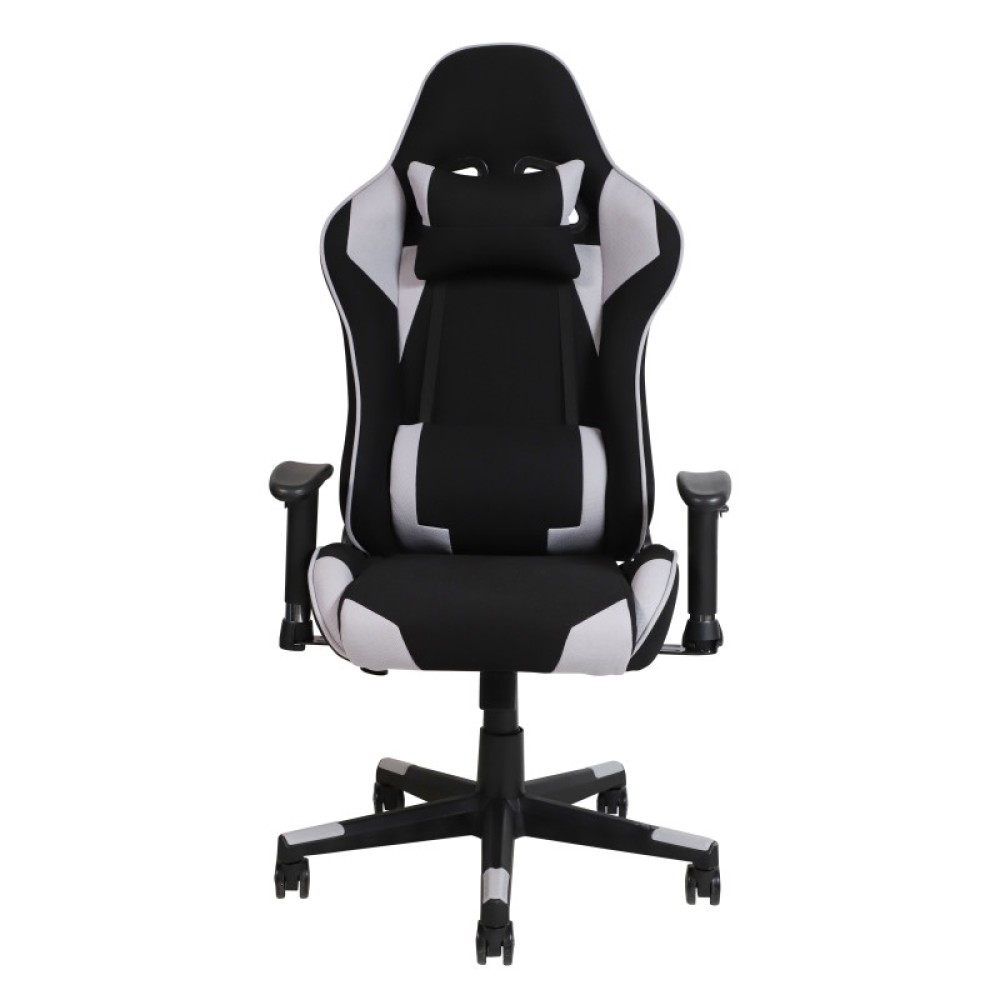Оббивка крісла виконана з міцної тканини, яка приємна на дотик і не втрачає вигляд навіть при щоденному використанні. Лаконічне чорно-сіре оформлення робить крісло доречним у геймерській, офісній або домашній студії.