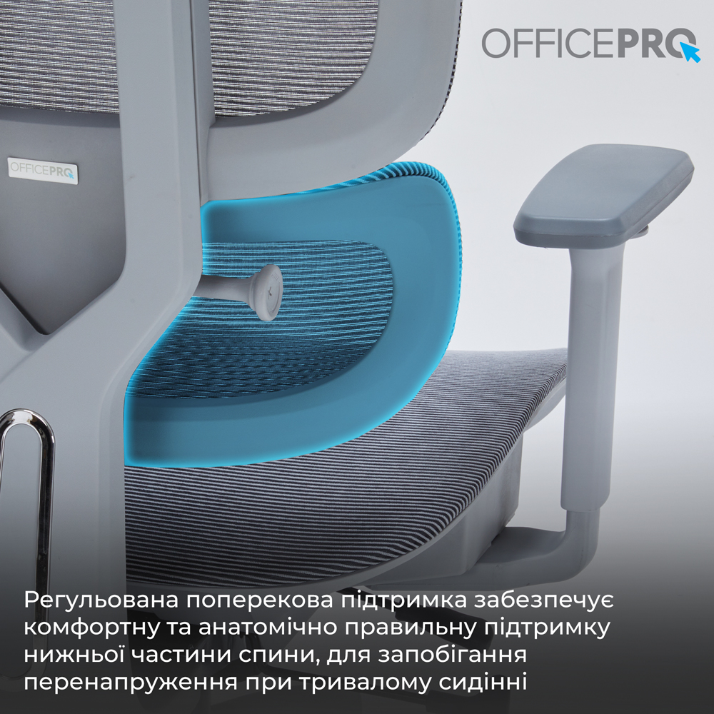 - Поперекова підтримка: Регульована поперекова підтримка гарантує ергономічну підтримку нижньої частини спини, зменшуючи напруження та дискомфорт при тривалому сидінні.