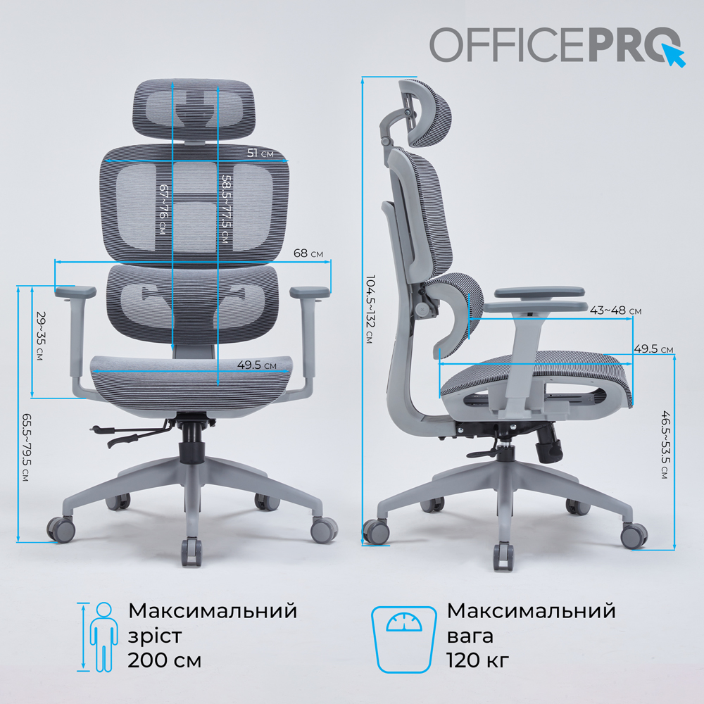 Крісло офісне OfficePro OC680G Grey - 897464