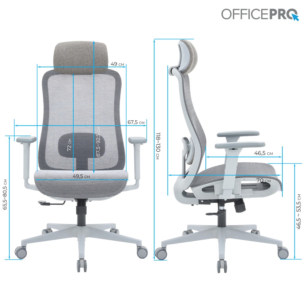 Крісло офісне Officepro OC670-G-G-G — це ергономічне та стильне рішення для тих, хто проводить багато часу за роботою. Його дизайн поєднує сучасний вигляд із продуманими функціями для збереження комфорту та здорової постави.