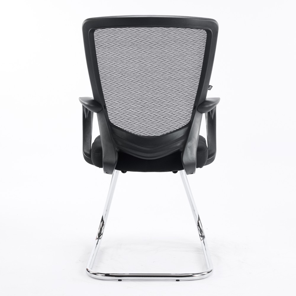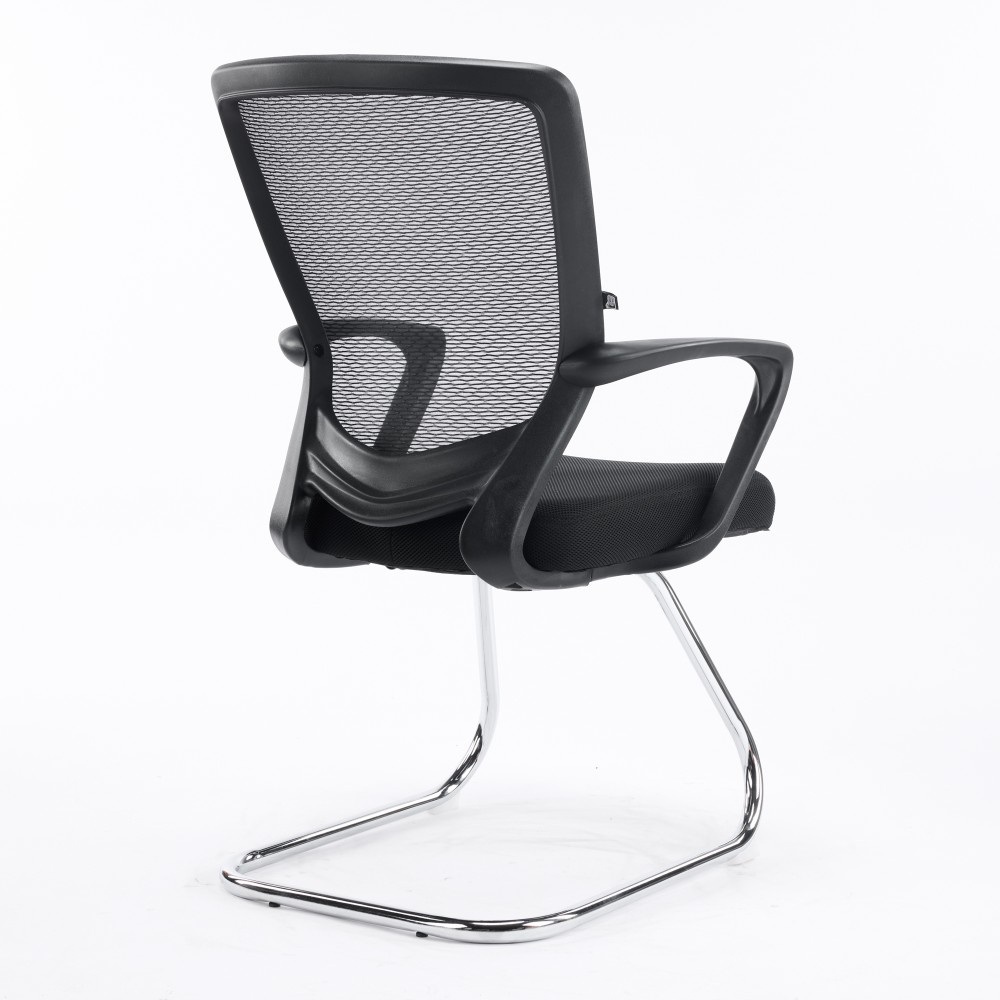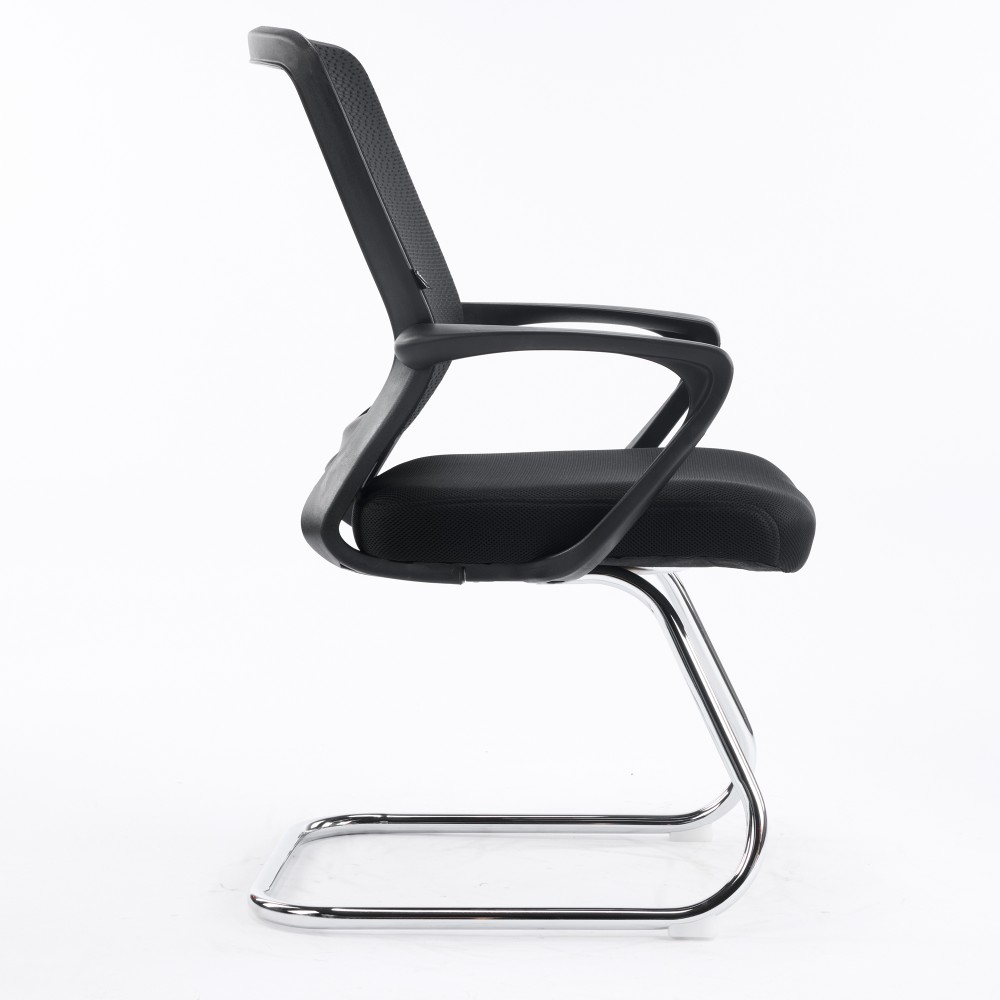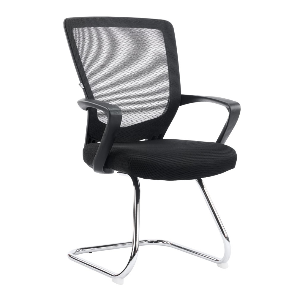 Хромовані металеві полози надають кріслу стійкість і витончений вигляд, а пластикові підлокітники роблять використання більш зручним. Конструкція розрахована на навантаження до 130 кг і відрізняється довговічністю.