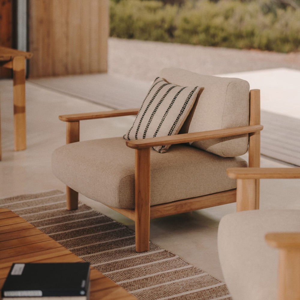 Крісло Tirant - це стримана розкіш, чисті лінії та природне тепло дерева, які зроблять кожен момент на свіжому повітрі особливо затишним.