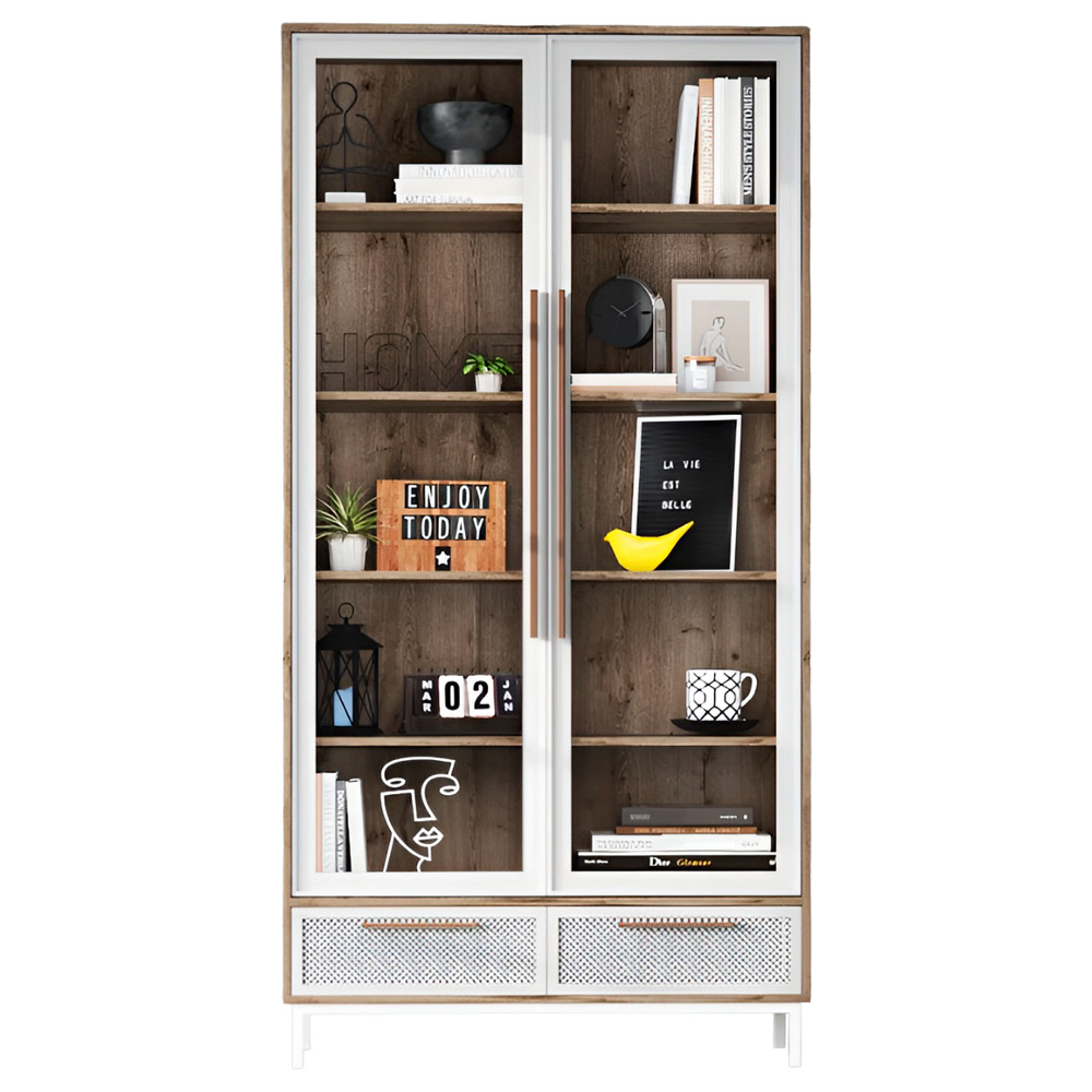 Шафа-вітрина Бруклін 3 - це вишуканий меблевий виріб, створений не тільки для ефективного зберігання ваших речей, але і щоб надати інтер'єру розкішного вигляду. З двома дверима зі склом, цей виріб надає можливість розмістити на видному місці ваші колекції, дорогоцінні та просто красиві предмети. При цьому два висувні ящики надають додаткове зручне місце для зберігання дрібних речей. Ця шафа поєднує в собі стиль та функціональність, допомагаючи захистити предмети від пилу та зовнішніх впливів. З такою шафою, ваш інтер'єр набуде стильного та функціонального доповнення, підкресливши вашу турботу про деталі та увагу до дизайну.