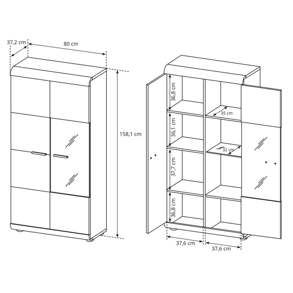 Вітрина низька Rink 2D1W/80 - стриманий і при цьому елегантний виріб, здатний прикрасити затишну вітальню з вишуканістю. Дві полиці, розташовані за скляною частиною дверцят, стануть ідеальним місцем для розміщення цінних, значимих та естетичних предметів: від посуду та книг до фотографій та келихів. У той час як закриті полиці можуть використовуватися для дбайливого зберігання інших, не менш важливих, речей.