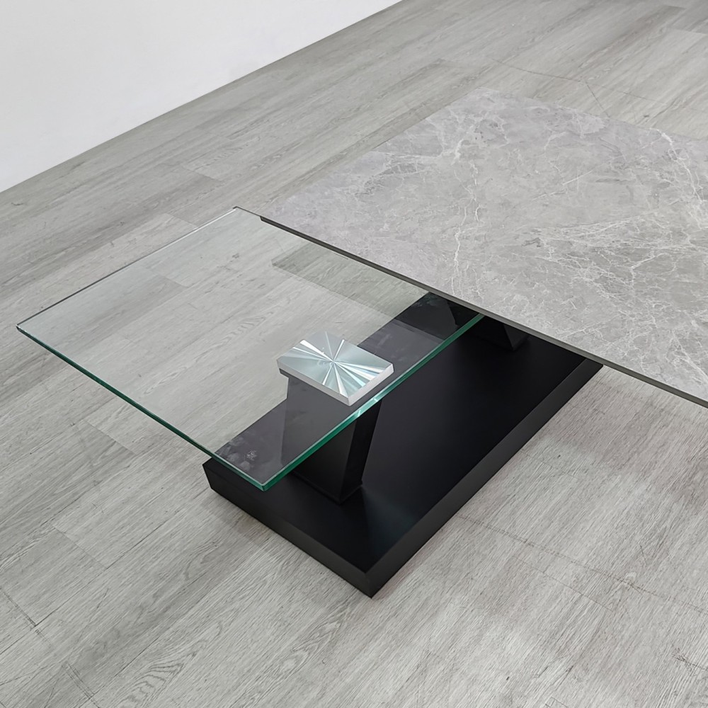 Журнальний столик Arizona — ідеальне поєднання естетики та функціональності. Модель відразу привертає увагу завдяки своїй багаторівневій конструкції та поєднанню преміальних матеріалів: кераміки, скла та металу. Цей столик стане не лише стильним акцентом у вітальні, але й зручним елементом меблів для щоденного використання.