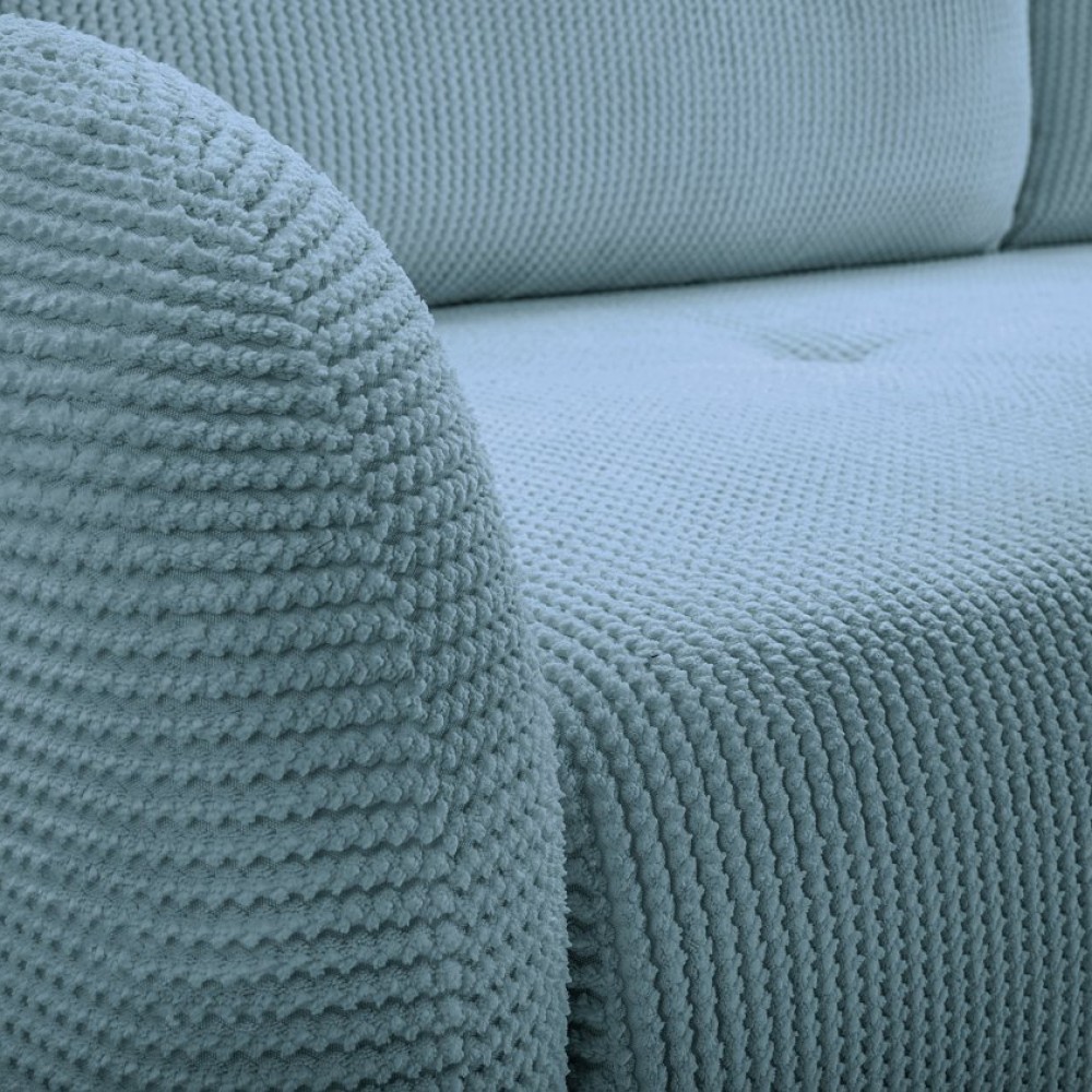 - Закруглені лінії, м'яка поверхня і якісна тканина надають дивану витончений і затишний вигляд. Декоративні подушки, що входять в комплект, додають шарму.