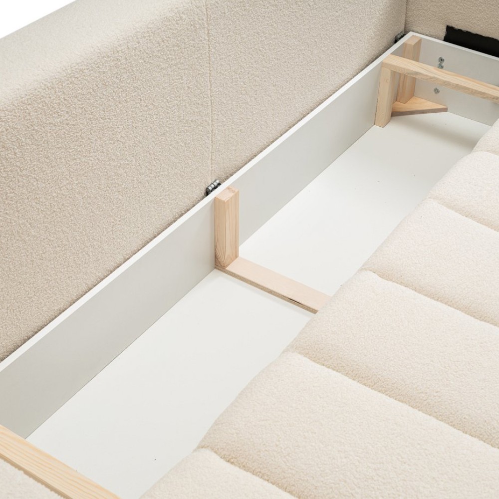 - Каркас з соснового дерева і ДСП гарантує міцність, а наповнювач з пінополіуретану забезпечує м'якість і довговічність.