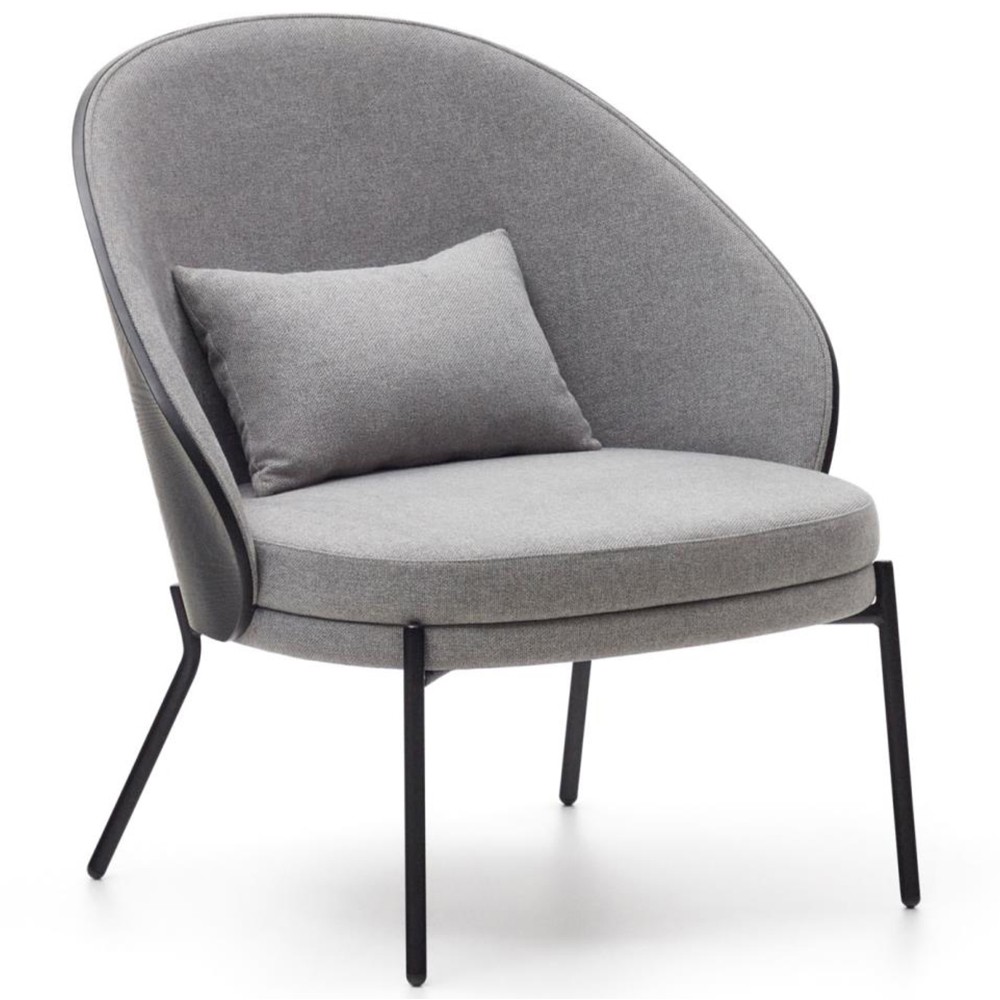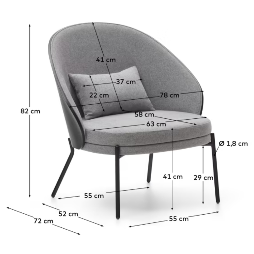 Металева конструкція крісла пофарбована в чорний матовий колір, надаючи виробу сучасного та індустріального характеру. Крісло постачається з додатковою подушкою зі знімним чохлом, який забезпечує легкість у догляді та допомагає підтримувати крісло в чистоті.