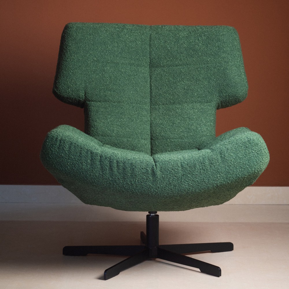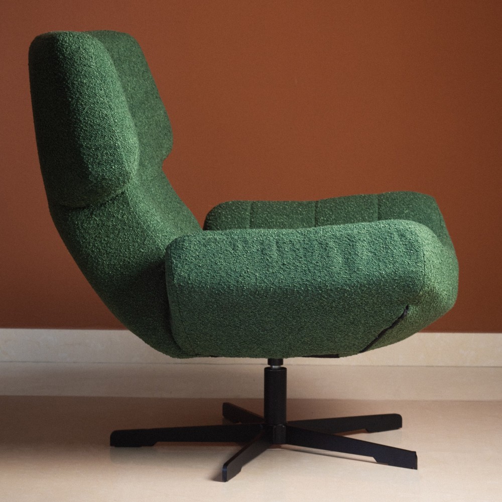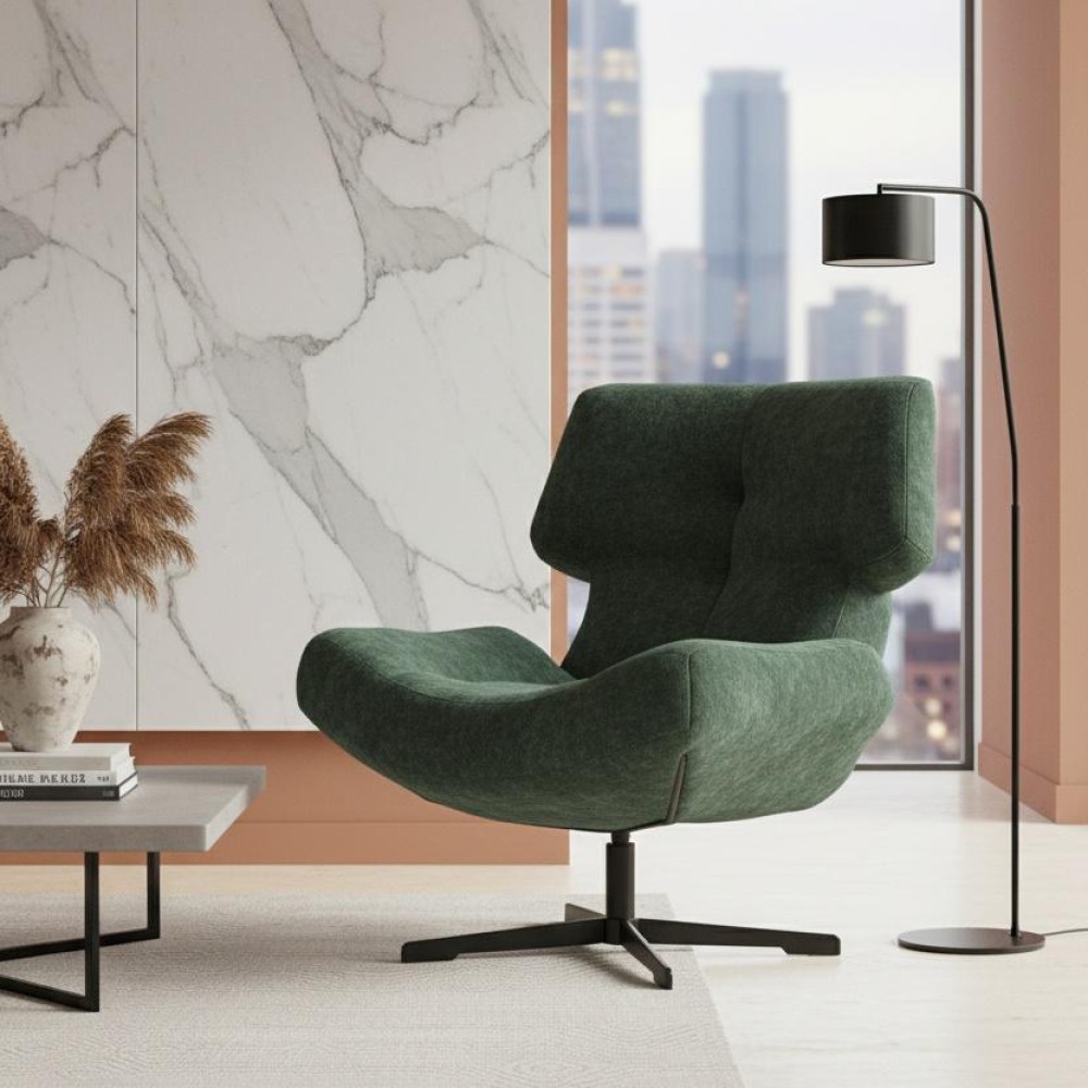 Крісло з поворотним механізмом Calma - це виняткове поєднання сучасного стилю та функціональності, створене для того, щоб надати вашому інтер'єру характеру та комфорту.