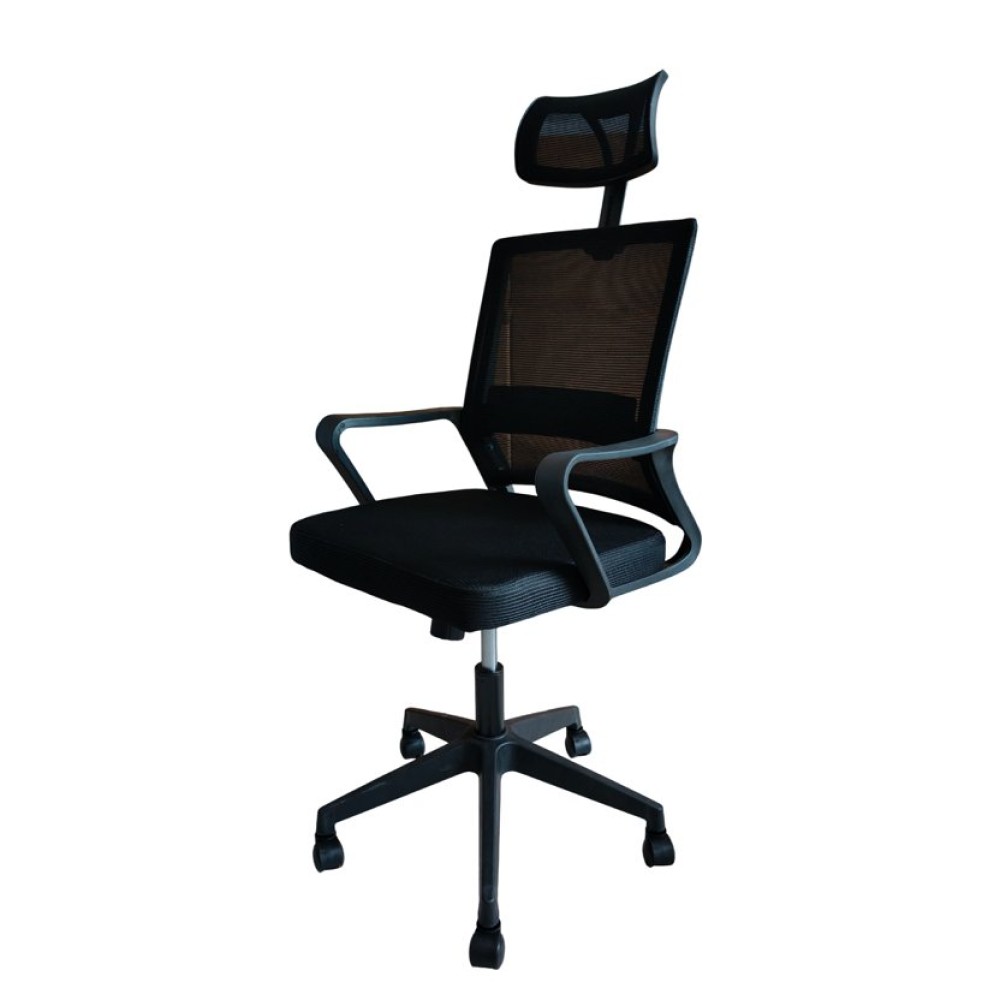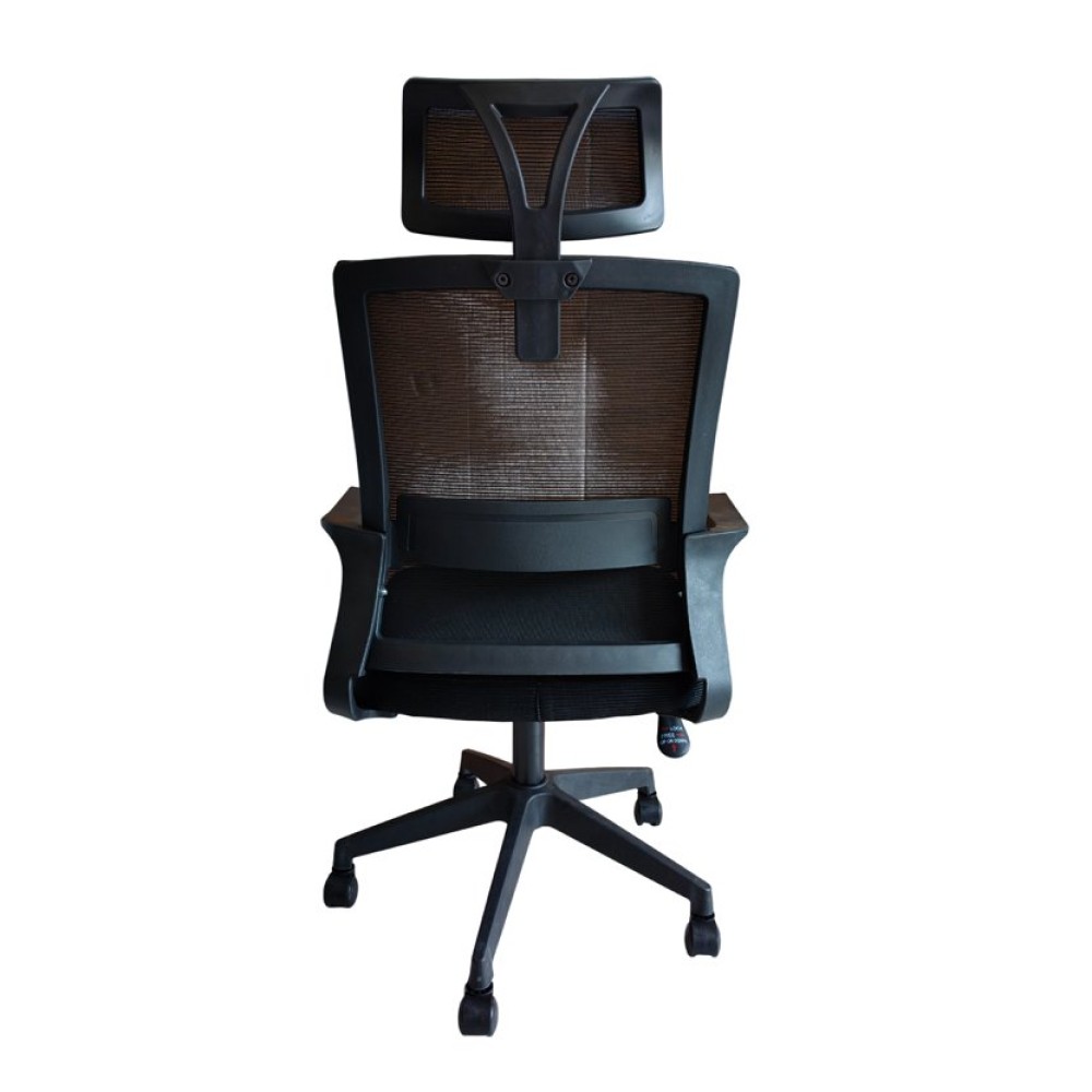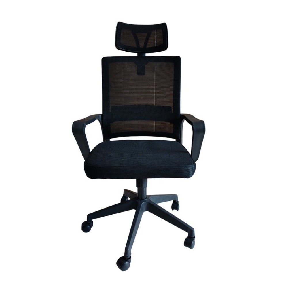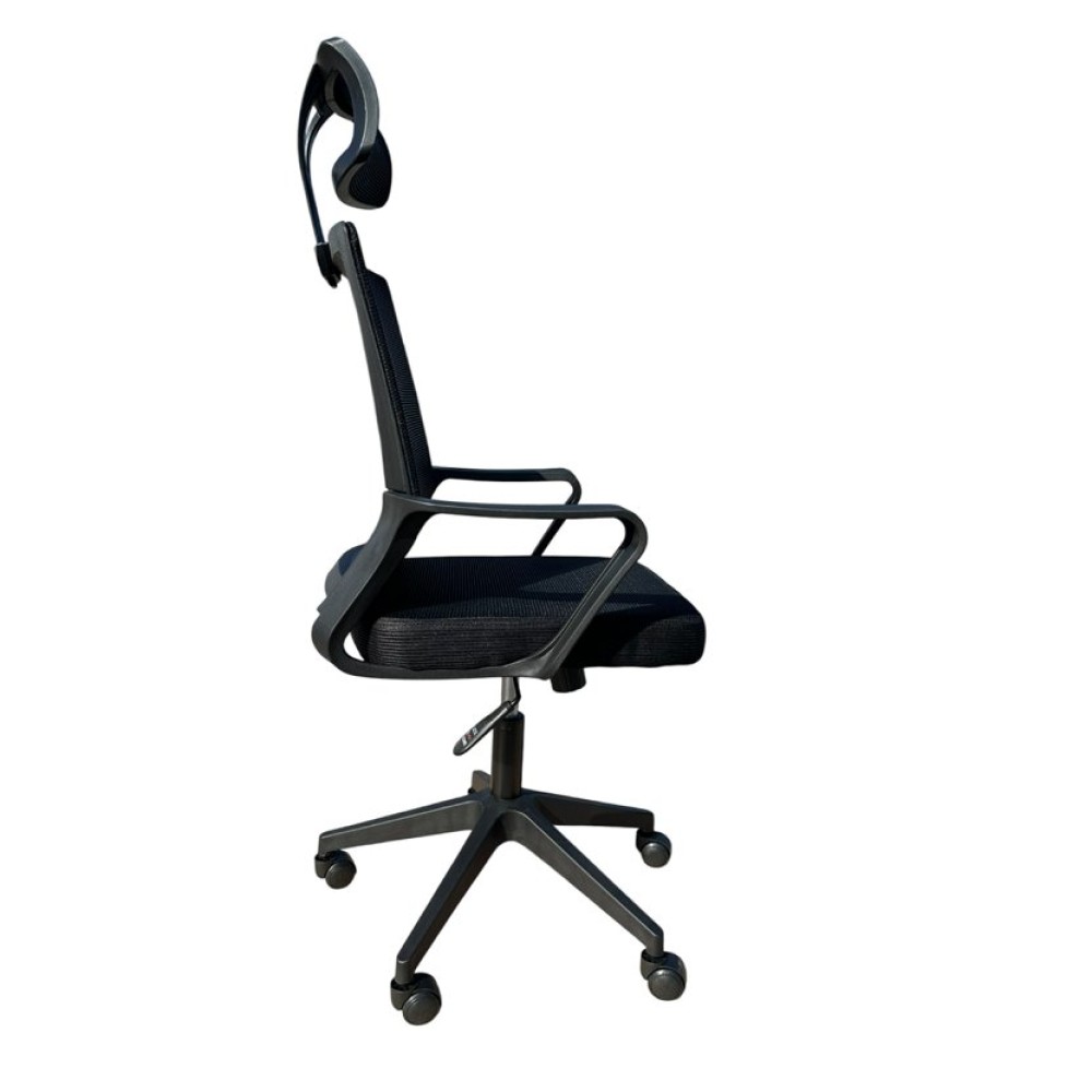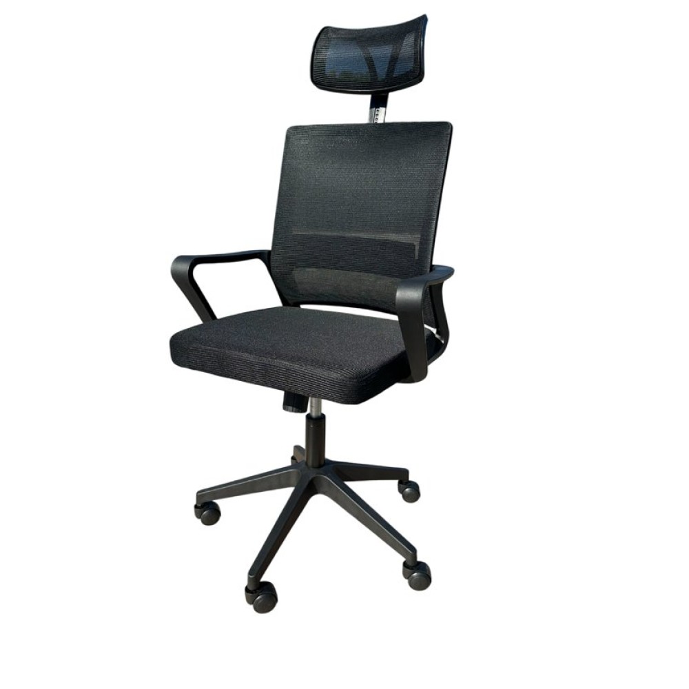 Чорний корпус і стильна оббивка з тканини та сітки роблять це крісло елегантним доповненням для інтер'єрів у стилі лофт або мінімалізм. Ніжки з безшумними колесиками забезпечують тиху експлуатацію та зручність переміщення по офісу чи дому.