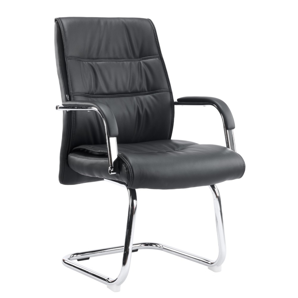 Хромовані елементи надають кріслу сучасний і представницький вигляд. Чорна оббивка підкреслює строгість і універсальність, легко вписуючись в будь-який інтер'єр офісу або конференц-залу.