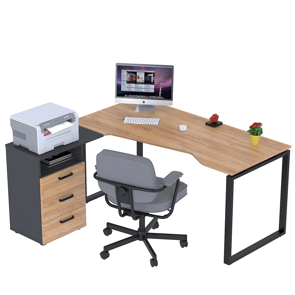 Стіл кутовий NDTU-3S-160 - це поєднання стильного дизайну, практичності та зручності для комфортної роботи. Завдяки продуманій конструкції та місткій тумбі з трьома висувними шухлядами, цей стіл допоможе ефективно організувати робочий простір і підтримувати порядок. Ергономічна форма стільниці забезпечує зручність використання навіть під час тривалої роботи.