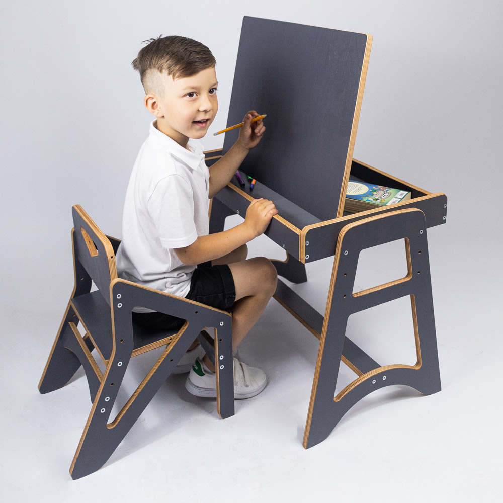 Стіл зі стільцем Зірковий супутник - знахідка для створення першого робочого місця для вашої дитини. Цей комплект порадує малюка та дозволить відчути комфорт та задоволення від занять. Регулювання висоти столу та стільця допоможуть підібрати ідеальні налаштування, щоб досягти максимального комфорту. Якщо ваша дитина любить малювати, то стільницю можна використовувати як мольберт.