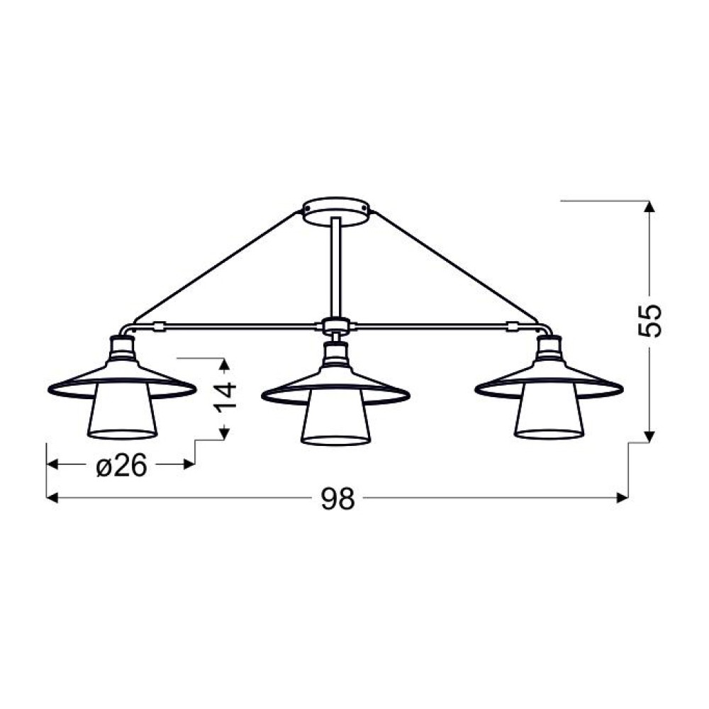 • Завдяки великій ширині 98 см та висоті 55 см, люстра ефектно виглядає навіть у просторих кімнатах, а винос 26 см забезпечує комфортний рівень освітлення.
