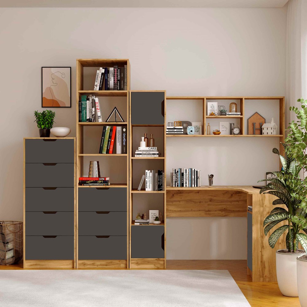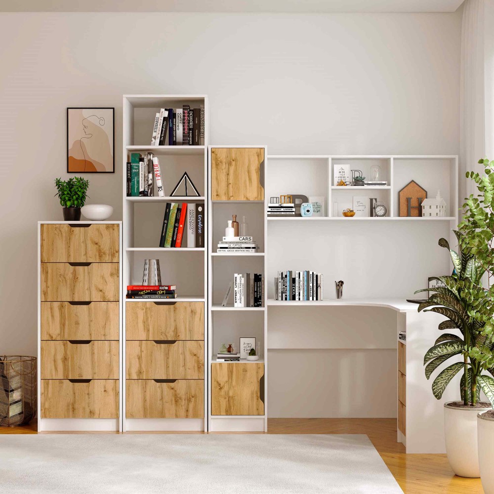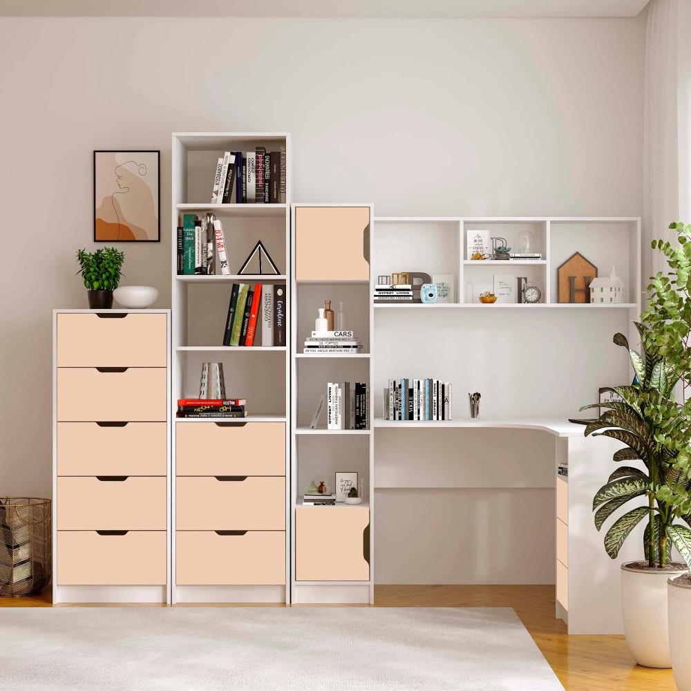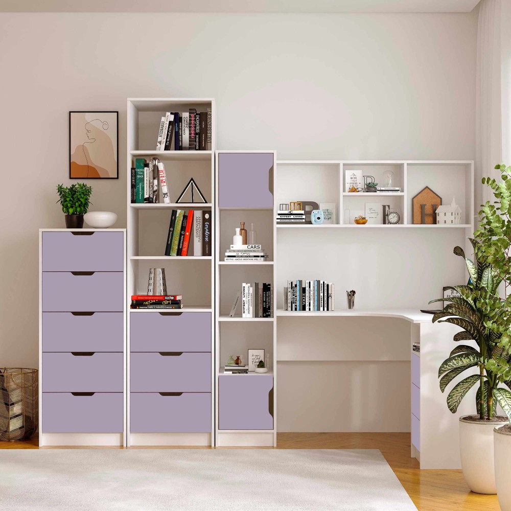 Пенал Teenager створений для тих, хто цінує порядок, комфорт і сучасний дизайн у дитячій або підлітковій кімнаті. Завдяки поєднанню відкритих полиць і зручних шухляд, він дозволяє організувати книжки, зошити, іграшки та дрібні аксесуари так, щоб усе було під рукою.