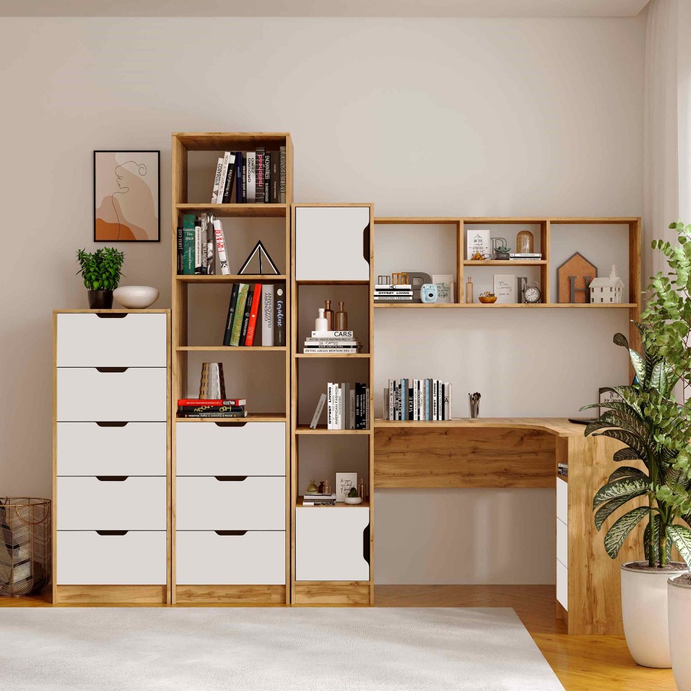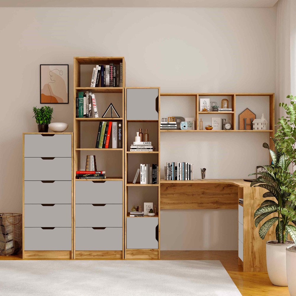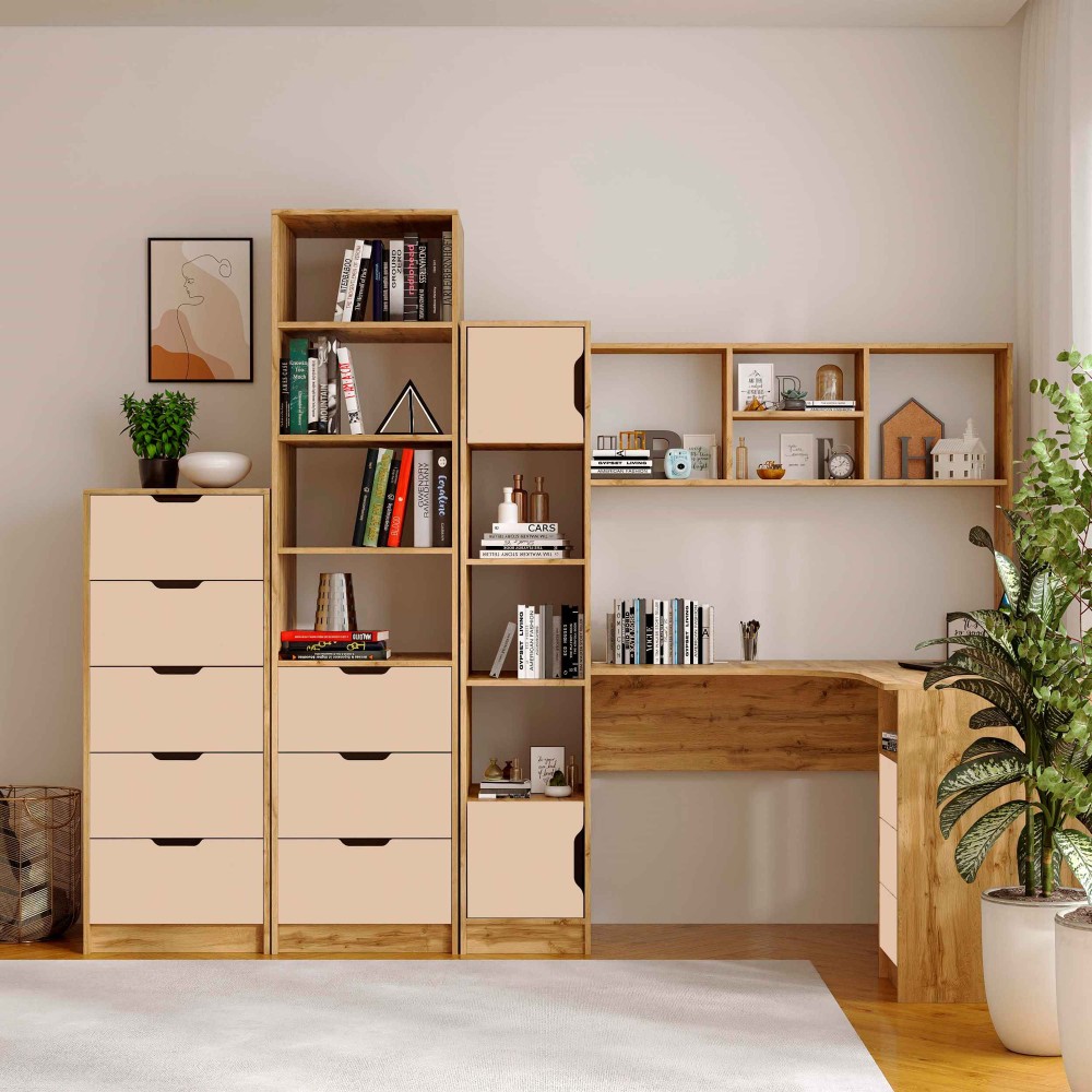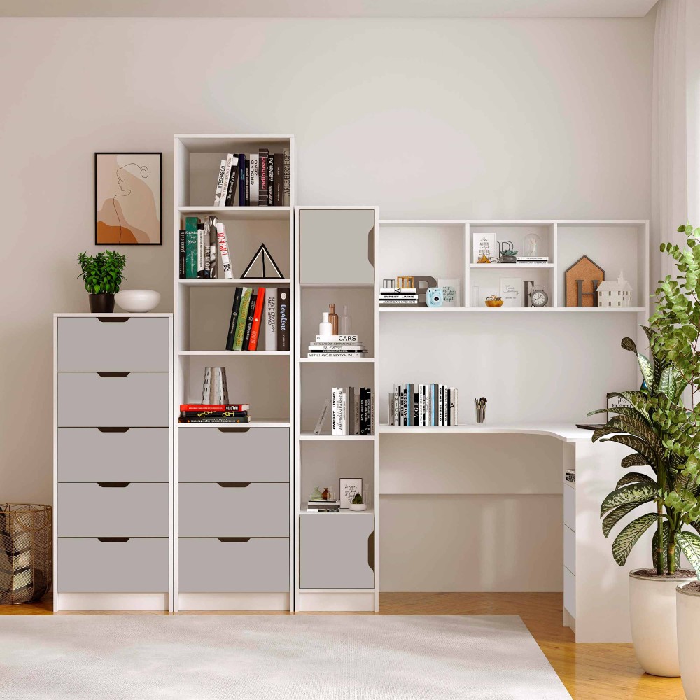 Пенал Teenager створений для тих, хто цінує порядок, комфорт і сучасний дизайн у дитячій або підлітковій кімнаті. Завдяки поєднанню відкритих полиць і зручних шухляд, він дозволяє організувати книжки, зошити, іграшки та дрібні аксесуари так, щоб усе було під рукою.