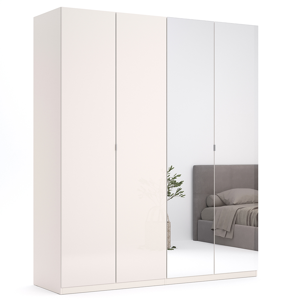 Шафа 4-х дверна Лілу - це винятково стильне та функціональне рішення для вашої спальні. Усередині цієї просторої шафи ви знайдете дві штанги для вішалок і дві полиці, що надають вам безліч можливостей для організованого зберігання вашого гардеробу. Штанги для вішалок забезпечать ідеальне місце для розміщення одягу на вішалках, зберігаючи його у відмінному стані, тоді як полиці стануть у нагоді для складених речей, білизни та аксесуарів. Це допоможе вам організувати гардероб і легко знаходити все необхідне. Дзеркала на фасаді шафи створюють відчуття простору і додають світла в кімнату, надаючи їй яскравості та стилю.