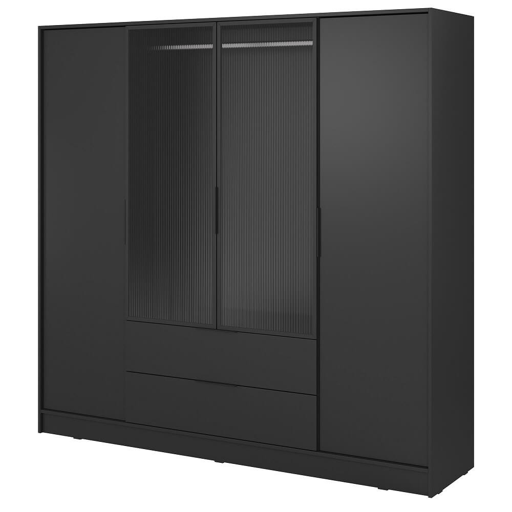 Шафа для одягу Kelly 4DRM 4-дверна з центральними прозорими дверцятами та реєю чорний без підсвічування - 280987