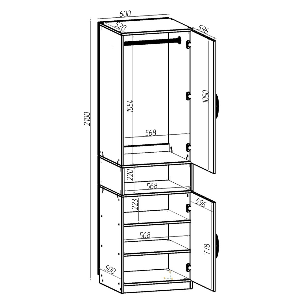 | Розмiри (ШхГхВ) | 60х52х210 см |