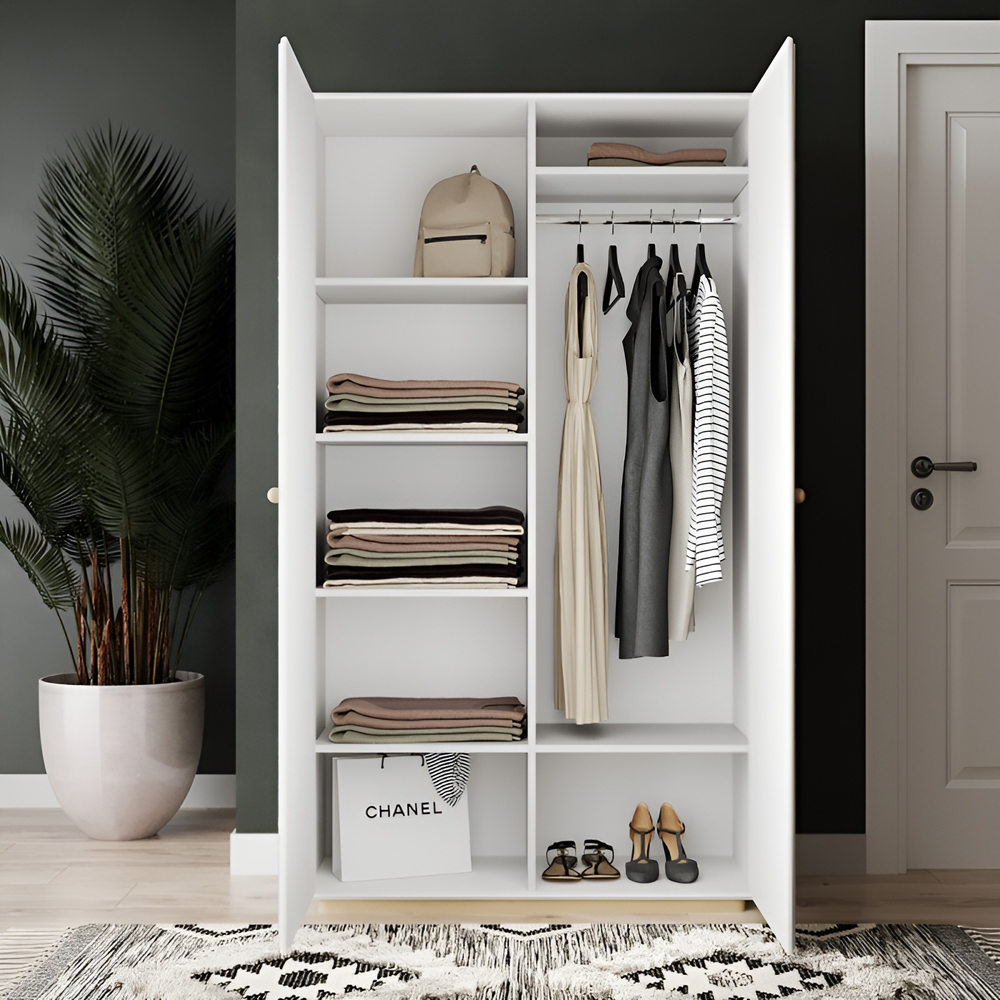 Шафа Кардинал надає зручність, функціональність та простоту у використанні, виділяючись серед безлічі варіантів меблів для зберігання. Незалежно від того, куди ви вирішите встановити цю шафу - в спальню, дитячу або вітальню, її переваги та різноманітність кольорових рішень зроблять її чудовим доповненням до вашого інтер'єру. Ця шафа з двома дверцятами досить компактна, тому є ідеальним рішенням навіть для невеликих приміщень. Також, цей виріб має значну місткість. Багато полиць надають зручне місце для розміщення одягу, постільної білизни, рушників, кошиків з нижньою білизною та взуття. Вбудована штанга допомагає зберегти верхній одяг, сукні та інші вбрання в ідеальному стані.