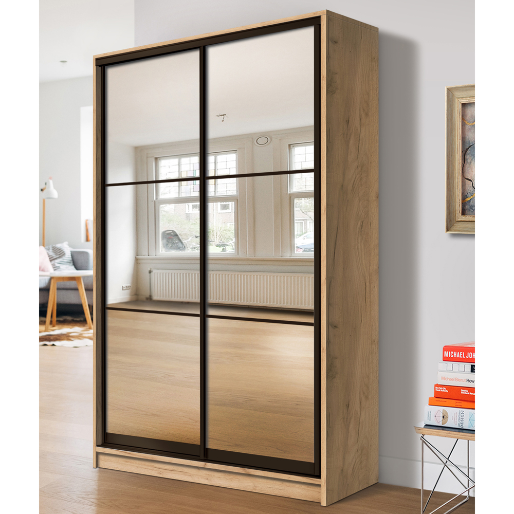 Шафа-купе E-line є практичним і стильним рішенням для організації гардероба. Виріб виділяється високою якістю виконання, забезпечуючи достатньо простору для розміщення вашого одягу. Поєднання якісних матеріалів і естетичного дизайну робить цю шафу ідеальним елементом для вашого інтер'єру. Виразні фасади із дзеркалами відповідають останнім тенденціям європейського меблевого дизайну. Ця шафа-купе не тільки задовольнить потреби в зберіганні, а й стане елегантним акцентом, підкреслюючи ваш витончений смак і увагу до деталей в оформленні приміщення.