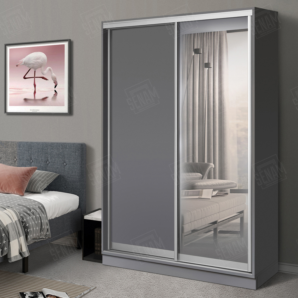 Шафа-купе S-line арт 898818 1300 мм 450 мм 2100 ШК 2.3 ДСП Антрацит ДСП Білий гладкий 0110 SM Дзеркало C-200 Срібло - 898818 - оптимальна ціна та висока якість