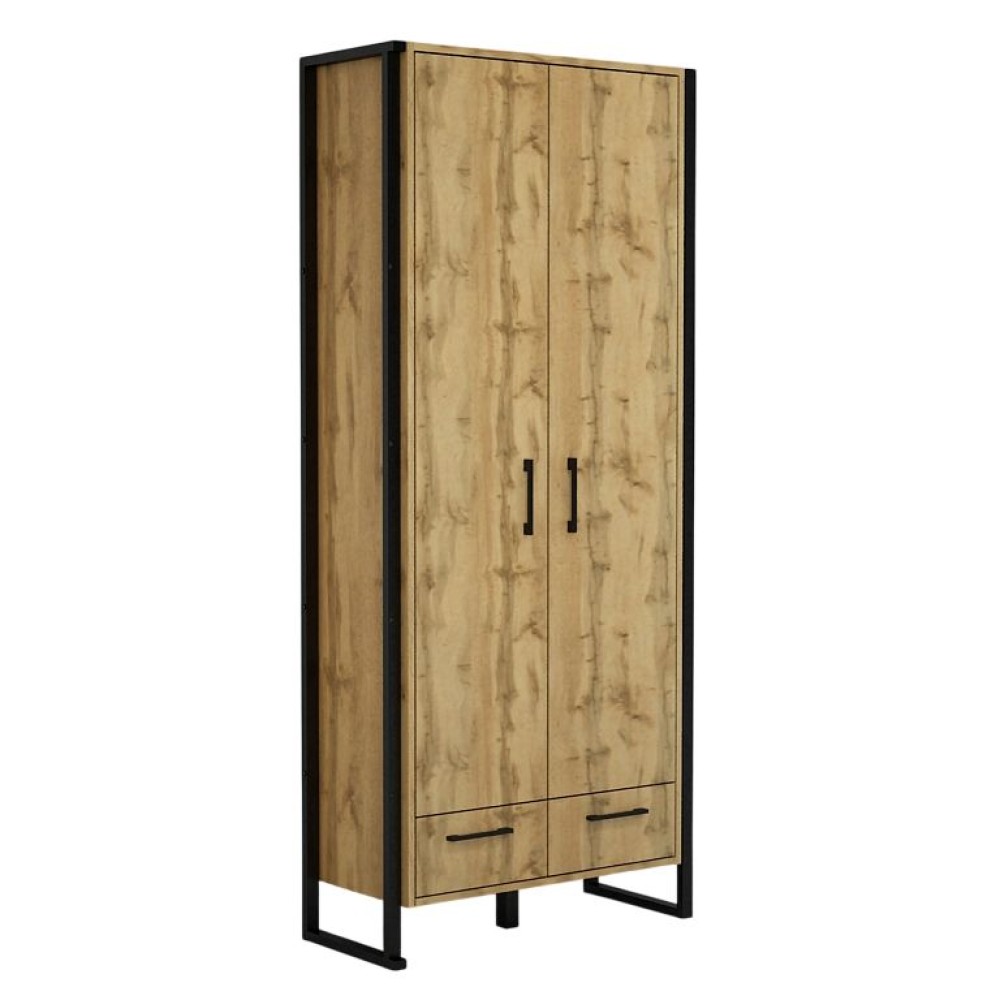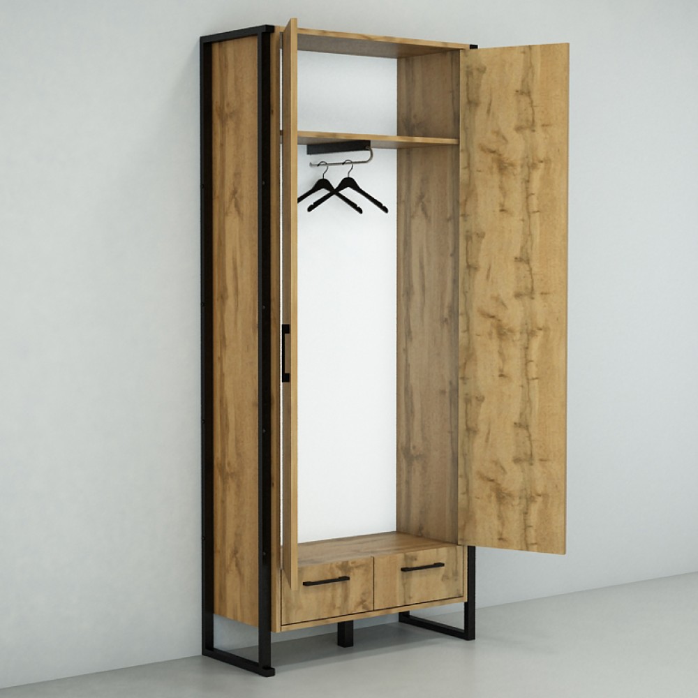Внутрішній простір організований максимально практично. Штанга дозволяє зручно розміщувати одяг на вішалках, верхня полиця підходить для зберігання речей, які використовуються рідше, а два висувні ящики в нижній частині ідеальні для білизни, аксесуарів або інших дрібниць.