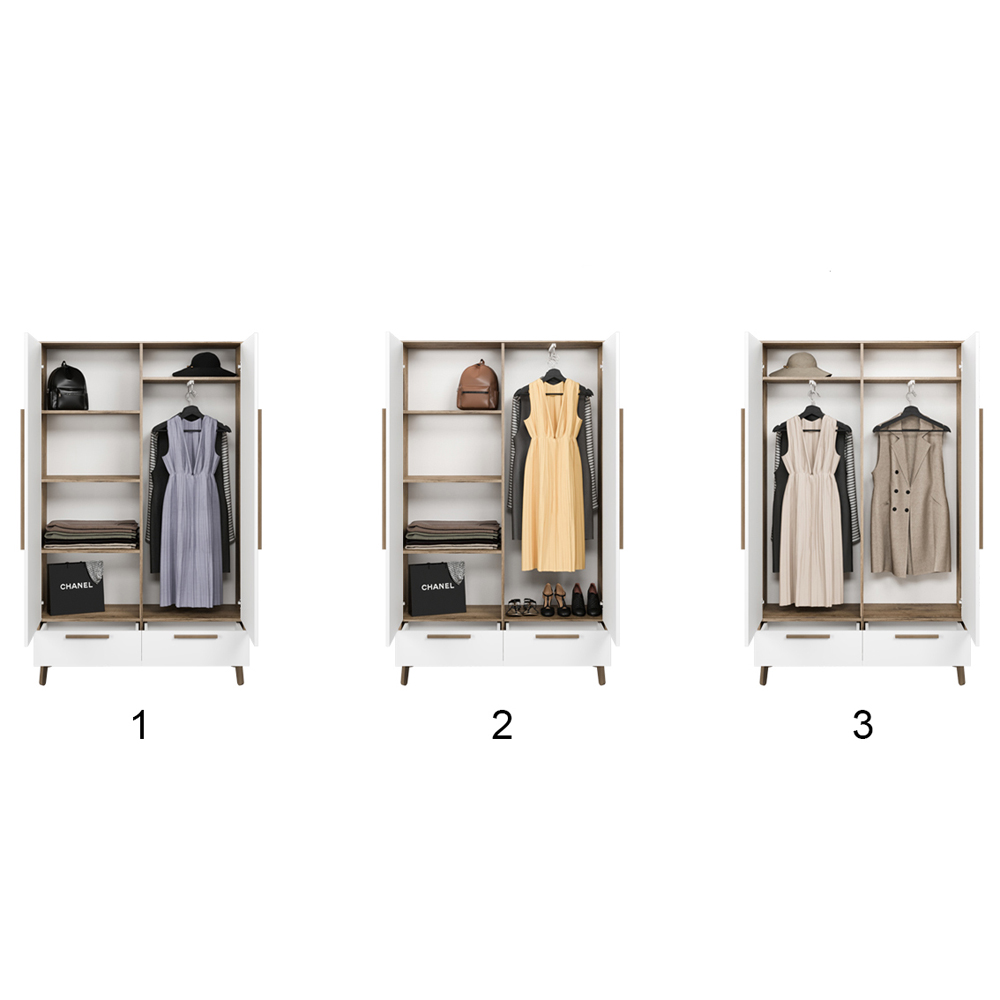 Шафа Манчестер – сучасне рішення, яке допоможе оптимально використовувати простір. Усередині шафа розділена на дві частини: одна з полицями, а інша - зі штангою для вішалок. Тепер у вас з'явиться місце, де ви зможете зручно та організовано зберігати одяг на вішалках, складені речі, білизну, взуття та інші елементи гардеробу. Ця шафа відмінно поєднує в собі стиль та функціональність, будучи ідеальним елементом інтер'єру.