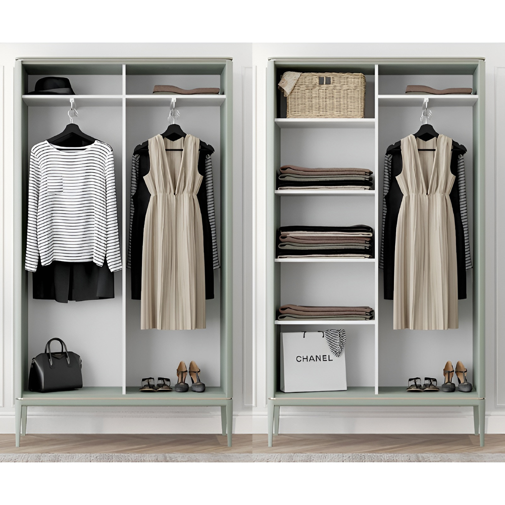 Шафа Наомі - це унікальний виріб, спроектований не тільки для ефективного зберігання, але й для внесення естетичного внеску до вашого інтер'єру. Ця шафа відрізняється компактними розмірами, що дозволяє їй вдало вписатися в будь-який кут вашої кімнати. Внутрішнє наповнення, що складається з полиць та штанг, створюють відмінні умови для організації речей, включаючи верхній одяг та спідню білизну. Додатково, у нижній частині шафи зручно зберігати взуття, сумки та предмети догляду за будинком. Високі ніжки забезпечують доступ до шафи з різних боків, що спрощує процес збирання. Завдяки своїй універсальності та багатофункціональності, ця шафа ідеально підходить для різних приміщень, включаючи спальню, передпокій, вбиральню або вітальню, надаючи функціональне та стильне рішення для зберігання.