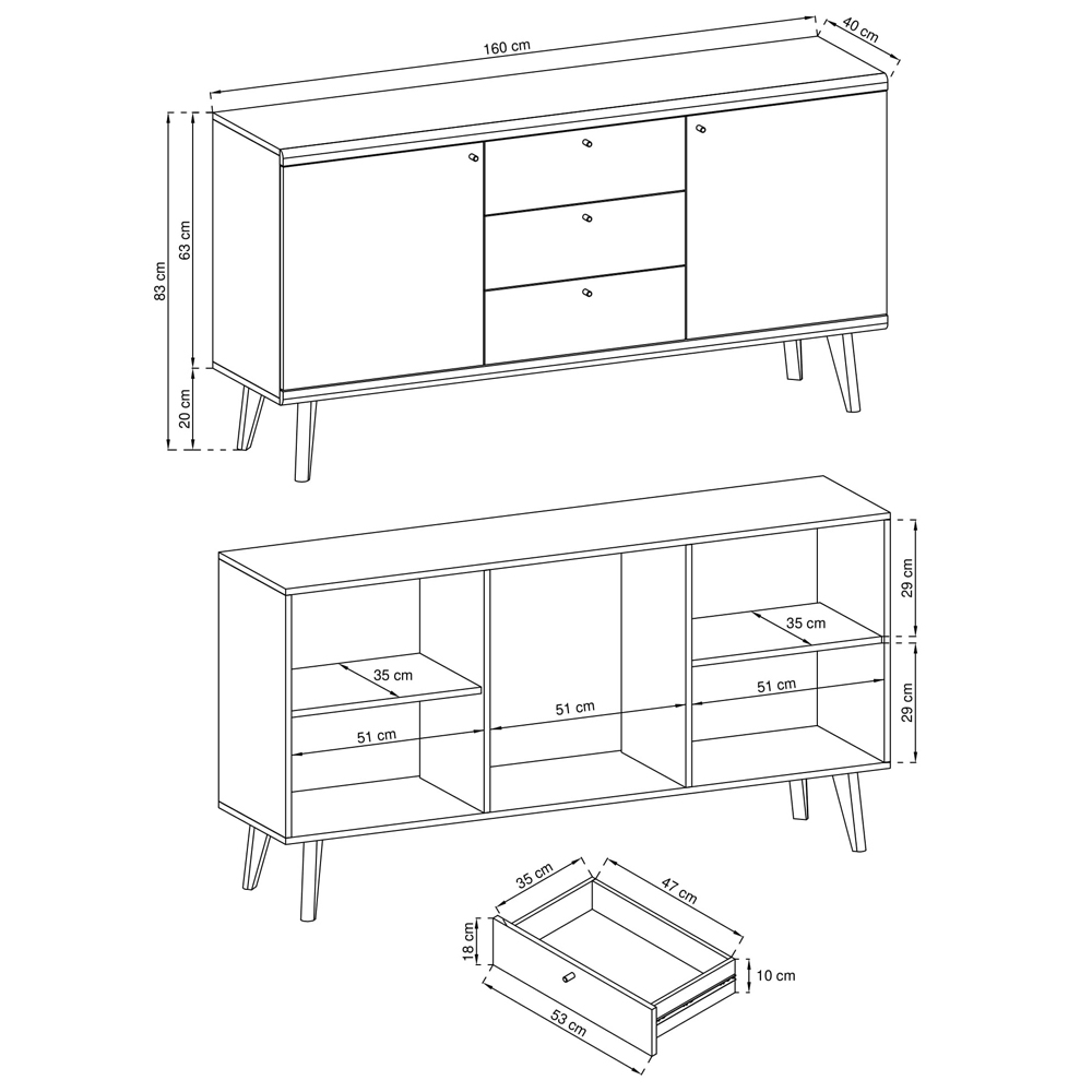 Корпус комода виготовлено з ламінованого ДСП товщиною 16 мм і МДФ 18 мм. Фасад виконано з ДСП із крайкою ABS. Ніжки з натурального дуба, а ручка - з алюмінію.
