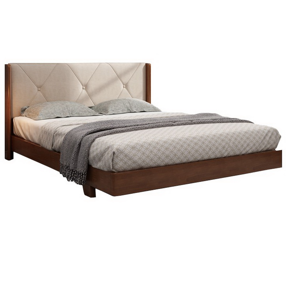 Ліжко Сієна 140х200 горіх світлий біла екошкіра без висувних ящиків - 311195 - оптимальна ціна та висока якість