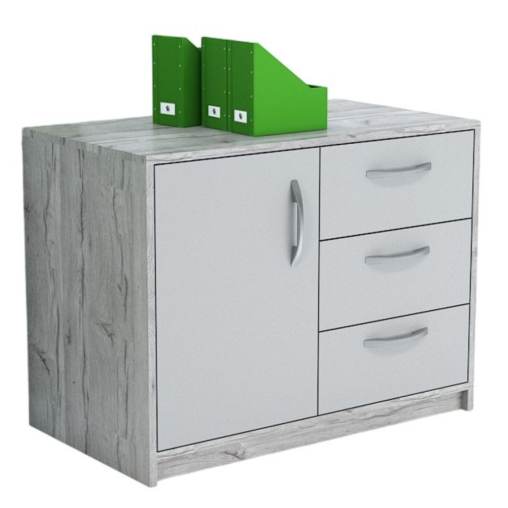 Конструкція передбачає закрите відділення з дверцятами та місткі висувні шухляди. Таке поєднання дозволяє зберігати як великі речі або папки, так і дрібну канцелярію, підтримуючи порядок без зайвого візуального шуму.
