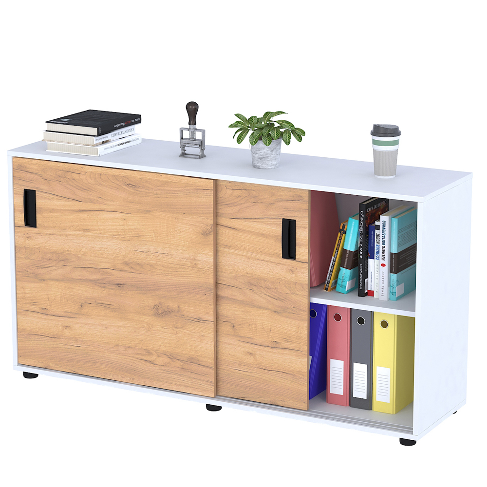 Тумба LS-141х75 - сучасне і функціональне рішення для організації зберігання в офісі, кабінеті або домашньому робочому просторі. Завдяки розсувним дверцятам ця тумба допоможе заощадити місце і дозволяє легко отримати доступ до вмісту. Місткі внутрішні відділення допомагають підтримувати порядок і зберігати документи, книги або інше робоче приладдя.
