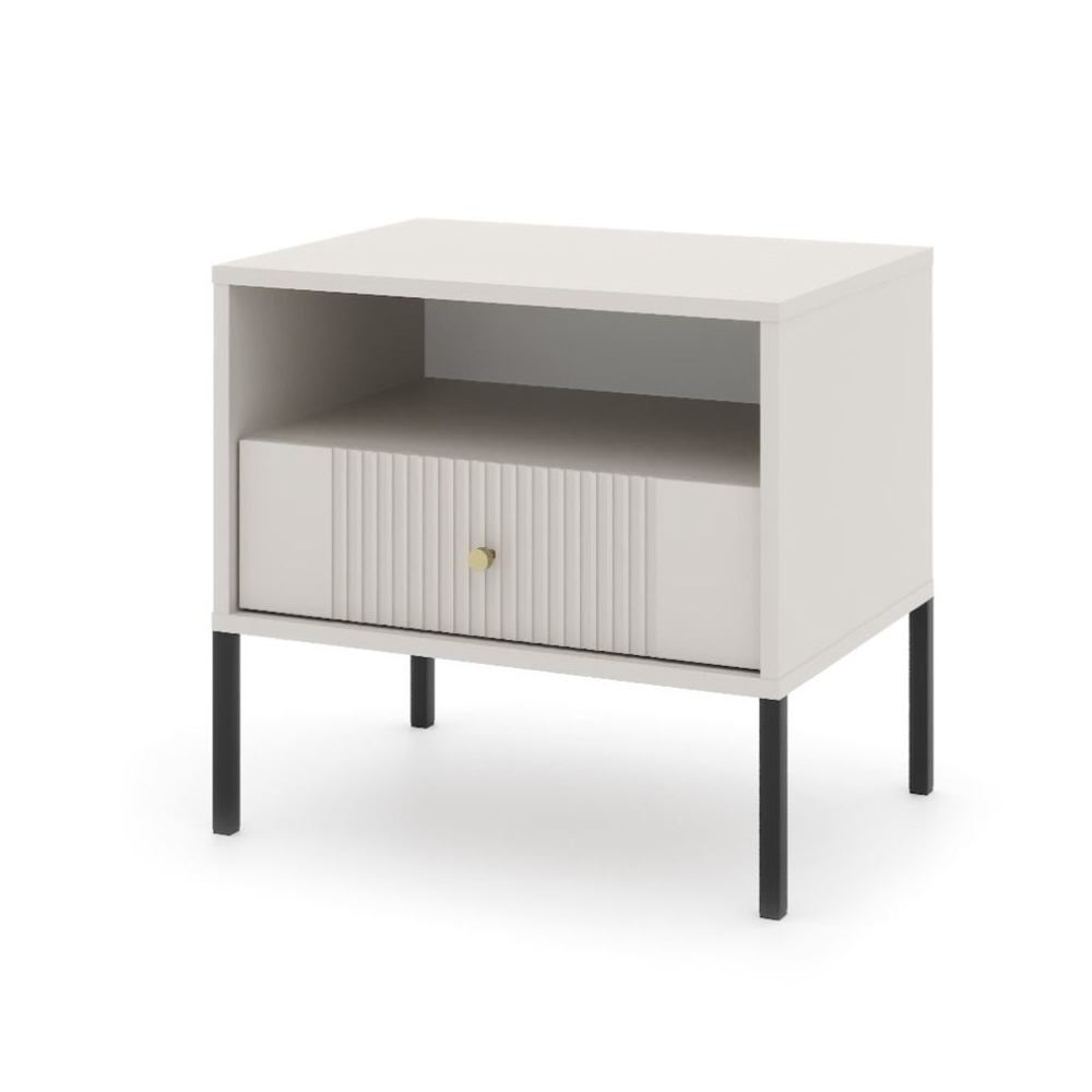 Практична шухляда та відкрита полиця надають ідеальне місце для зберігання дрібних речей, які потрібно мати під рукою. Шухляда встановлена на кулькових напрямних із повним висуванням, забезпечуючи легкий доступ до предметів, що зберігаються. Завдяки цій тумбі у вас з'явиться місце для нічника, телефону або книги.