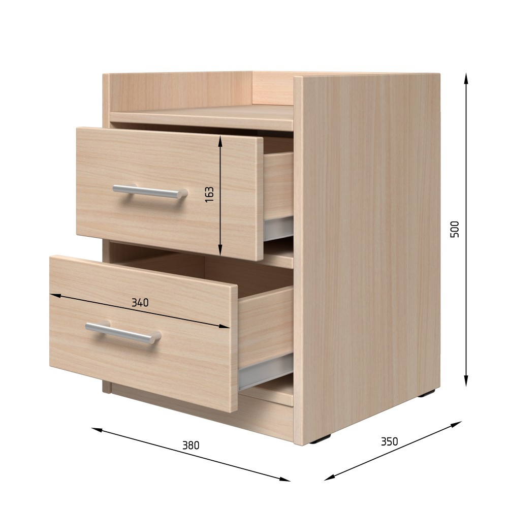 Компактна, але функціональна конструкція включає дві глибокі шухляди, які висуваються плавно та безшумно. Вони забезпечують достатньо простору для зберігання особистих речей, косметики, документів або гаджетів.