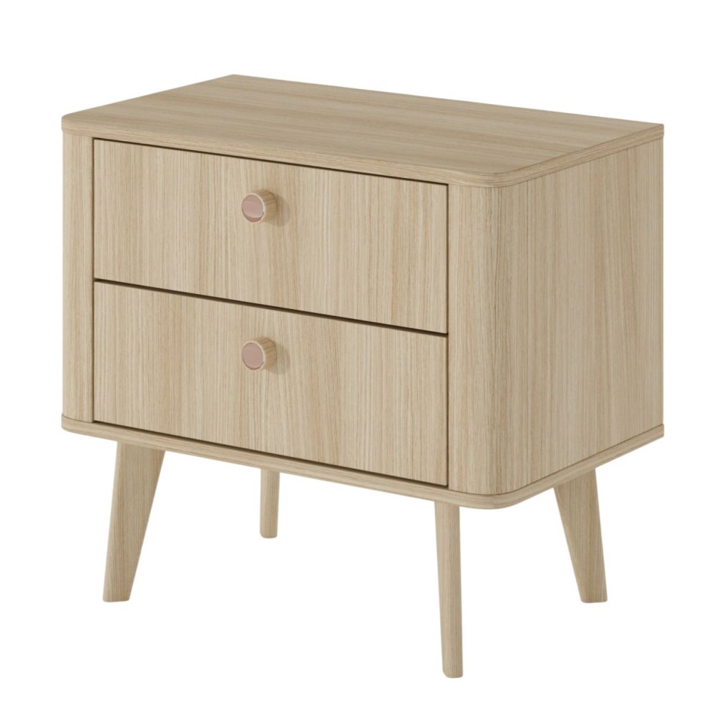 Тумба приліжкова Viki 2S з 2 ящиками — це вдале поєднання природної краси дерева, функціональності та легкості дизайну. Вона створена в дусі бохо та скандинавського стилю, де цінується природність, спокій та практичність. Завдяки продуманим формам і м'яким округлим лініям тумбочка легко впишеться в будь-яку сучасну спальню, додавши в простір тепла і затишку.