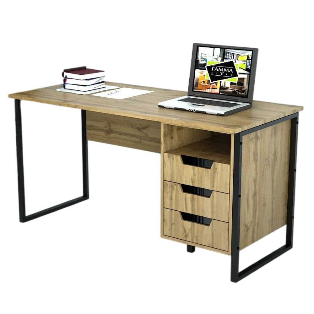 Корпус столу виготовлений з ДСП товщиною 18 мм, фасади — з МДФ у декорі Дуб Вотан, що додає виробу виразності та глибини. Стільниця може бути виконана у стандартному варіанті 18 мм або у потовщеному — 36 мм, для більш солідного вигляду та підвищеної міцності. Пластикова крайка 0,5–2 мм захищає торці та подовжує термін експлуатації.
