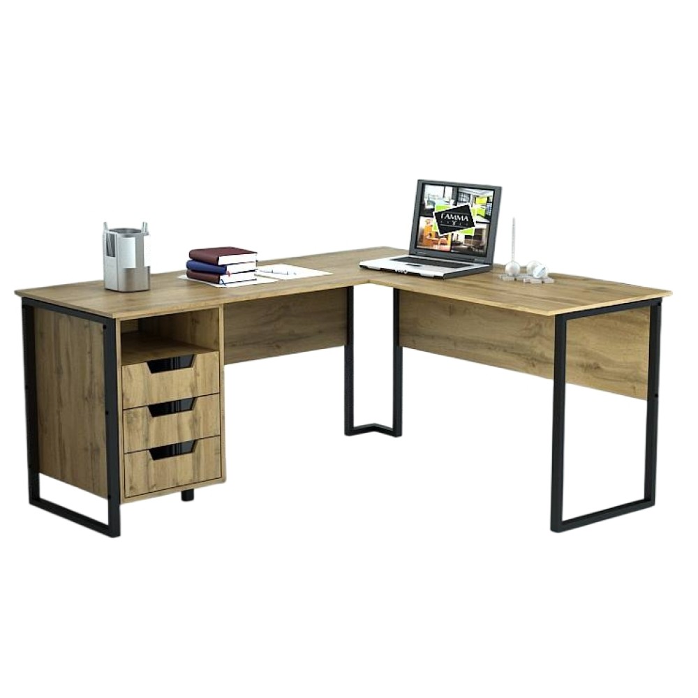 Кутова форма столу збільшує корисну робочу поверхню та дозволяє зручно розмістити техніку й робочі аксесуари. Це універсальний варіант, який вдало поєднує функціональність, стиль і комфорт у щоденному використанні.