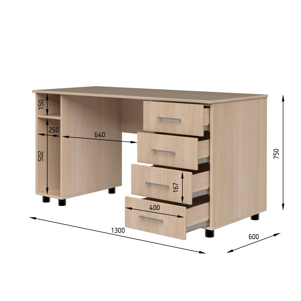 Стіл комп'ютерний СК3 4Я створений для тих, хто цінує порядок, комфорт і функціональність у робочому просторі. Чотири місткі висувні ящики дозволяють зручно зберігати документи, канцелярію та аксесуари, а окреме відділення під системний блок забезпечує правильне розташування техніки та ефективну вентиляцію.