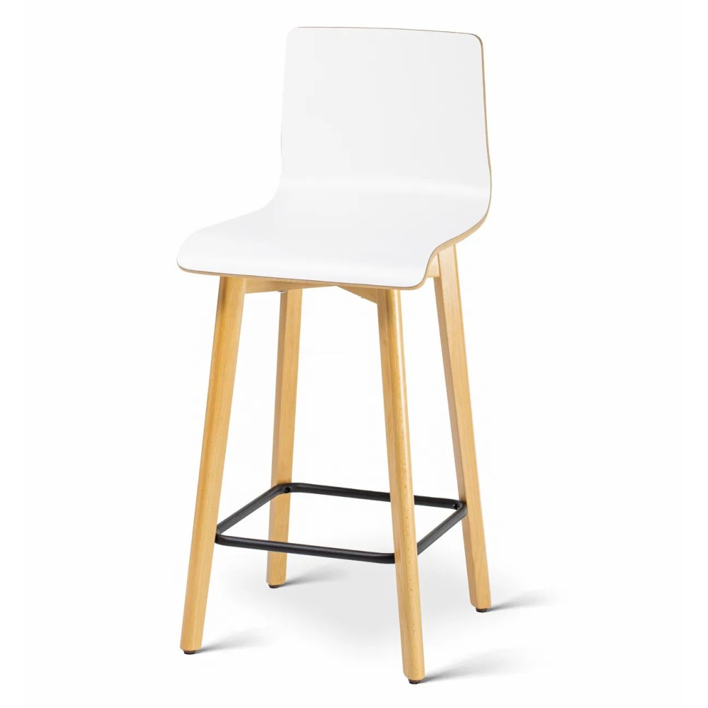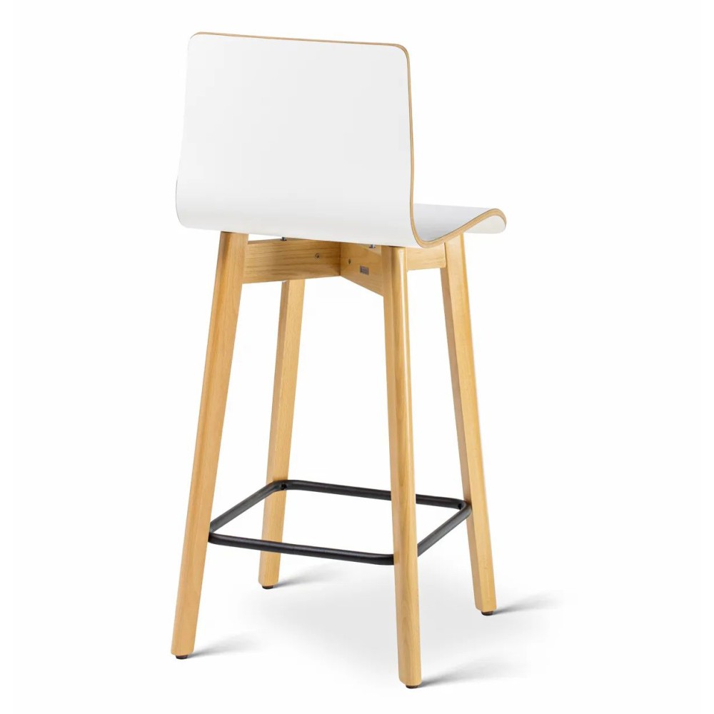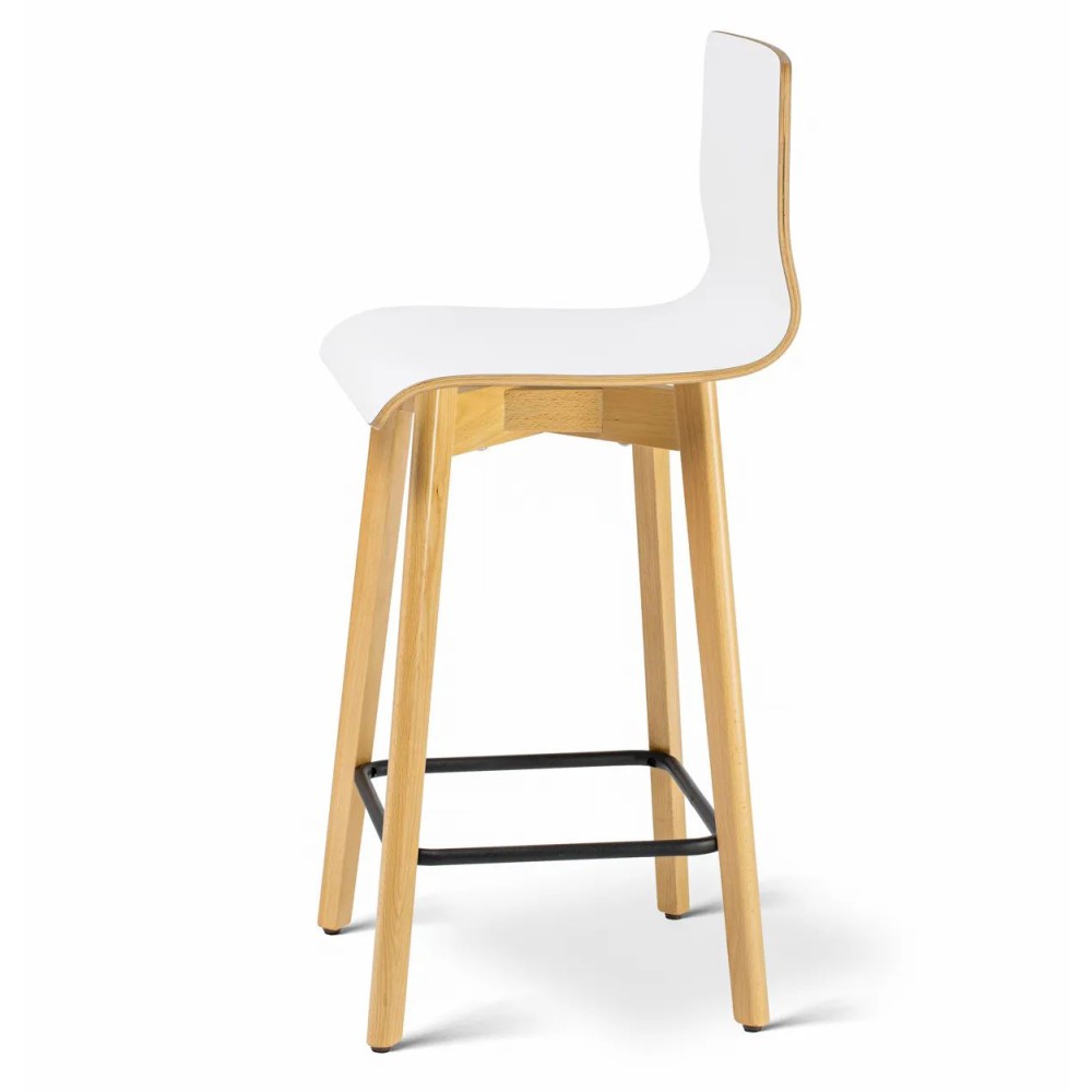 Стілець виконаний з натурального дерева. Спинка і ніжки можуть бути пофарбовані в колір по розкладці RAL, а, також, в популярні деревні відтінки: венге, бук, горіх. При замовленні є можливість вибрати висоту посадки 65 або 75 см, а також, замовити незнімну м'яку подушку на сидіння.