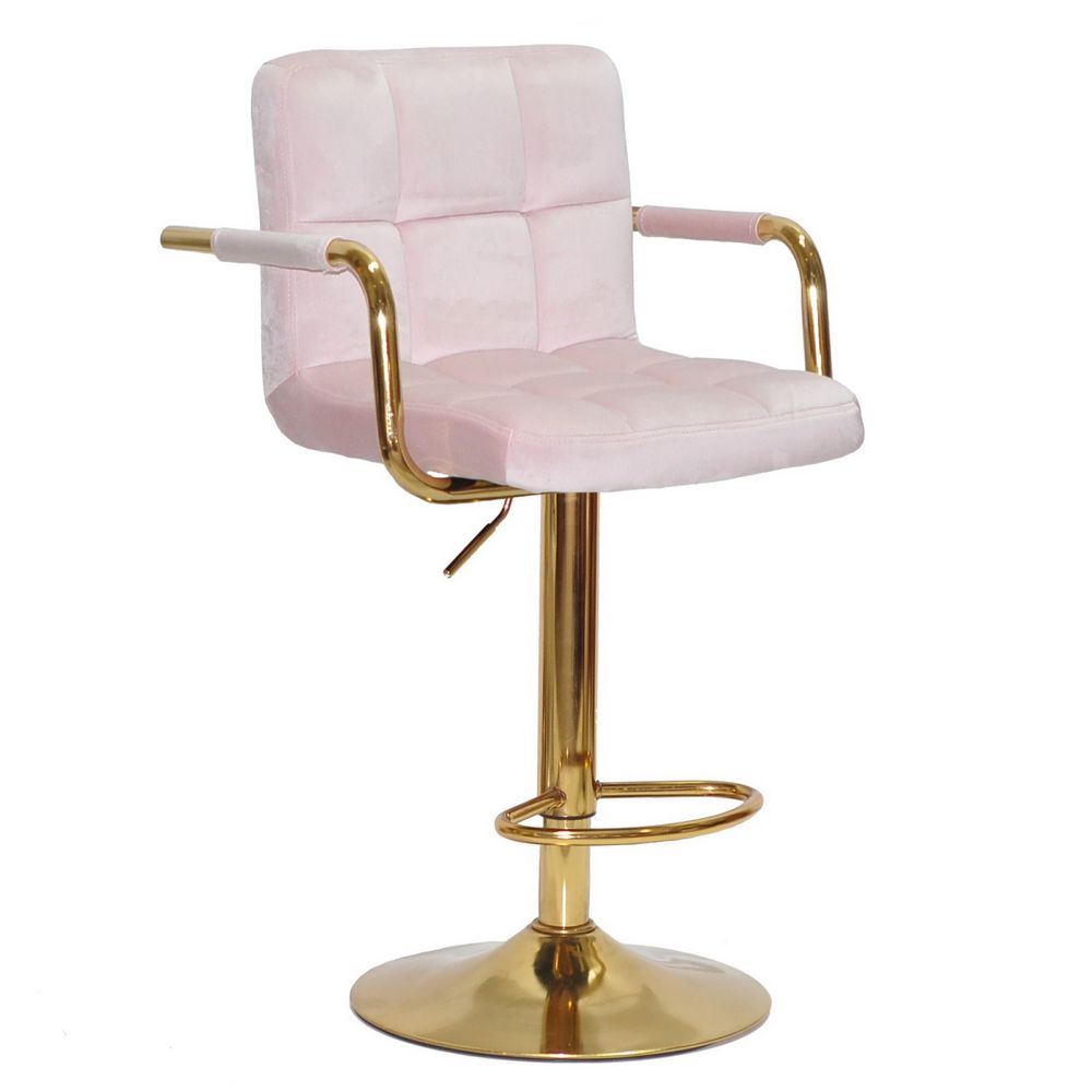 Оригінальний барний стілець Tetris arm gold стане чудовим доповненням для сучасного кафе або пабу, виготовляється тільки з якісних матеріалів. Ніжка стільця встановлена на міцному металевому млинці, для створення каркасу використовується хромована сталь. Для додаткової зручності посередині ножки встановлена зручна підставка для ніг. Оббивка стільця виконується за допомогою міцної екошкіри або оксамиту, з боків встановлені м'які підлокітники.