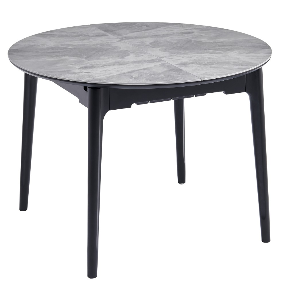Стільниця виконана з міцної кераміки з матовою поверхнею. Матеріал відрізняється стійкістю до подряпин, тепла, вологи та зносу, що робить його однією з найкращих опцій для обідніх столів. Форма стільниці — кругла в складеному стані та овальна після розкладання — забезпечує естетичність і зручність у користуванні.