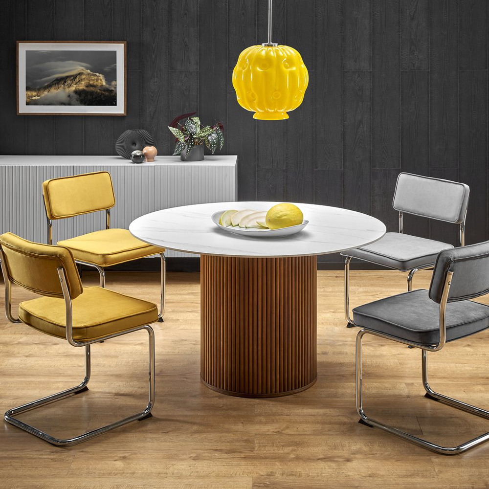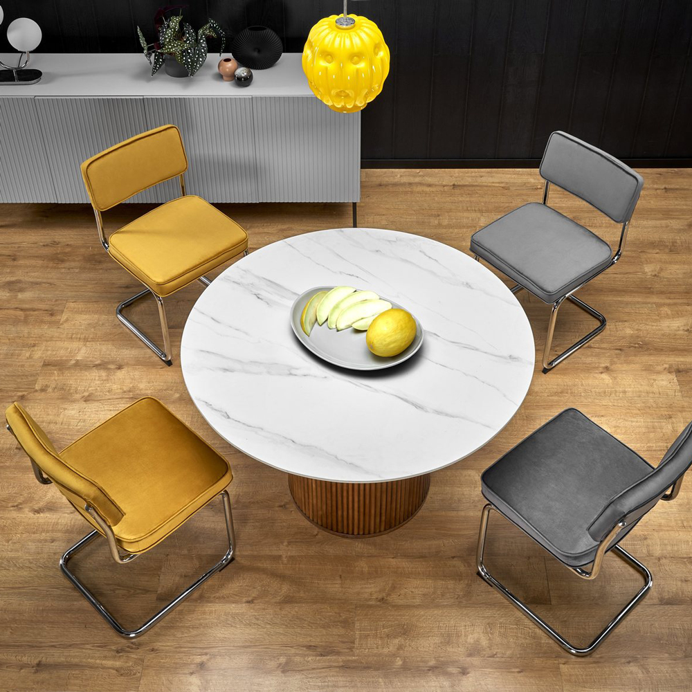 Стіл Bruno - це унікальне поєднання стилю і функціональності, яке ідеально впишеться в будь-який інтер'єр. Вишукана основа, тонована під горіх, і керамічна стільниця роблять цей стіл центральним елементом вітальні або їдальні, підкресливши вашу любов до якості та дизайну.