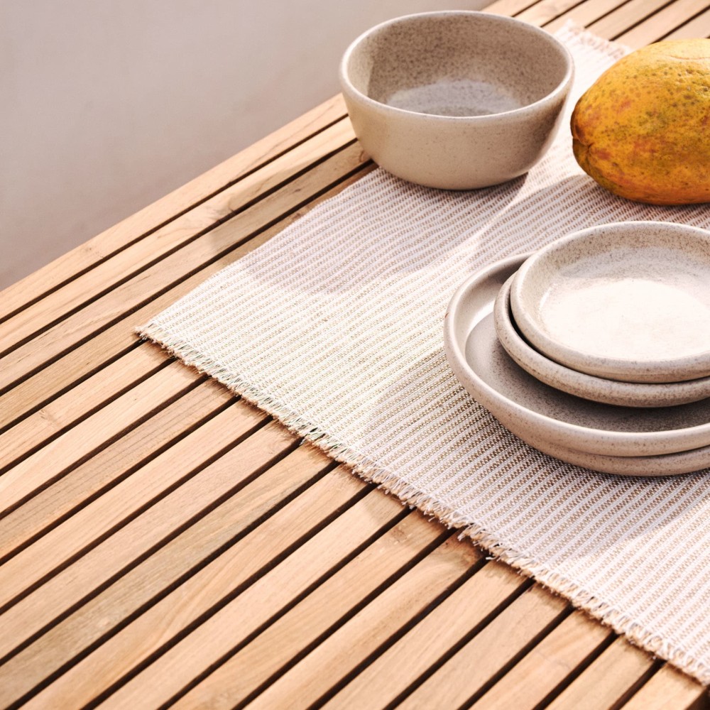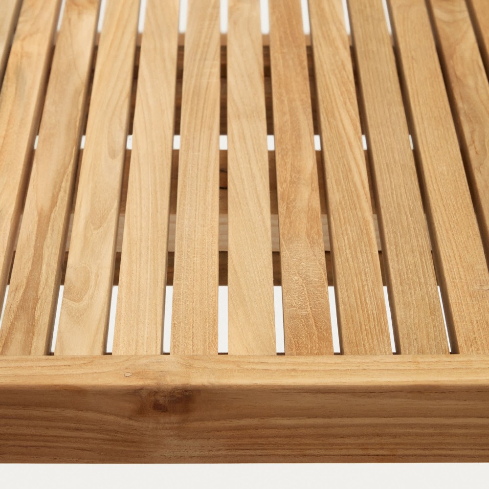 Стіл Canadell високий, виготовлений з масиву переробленого тика, допоможе перетворити відкритий простір на стильну зону відпочинку. Цей натуральний матеріал не тільки підкреслює зв'язок з природою, але й відрізняється винятковою міцністю — стійкий до вологи, вогкості та мікроорганізмів, що робить стіл ідеальним для вуличного використання.