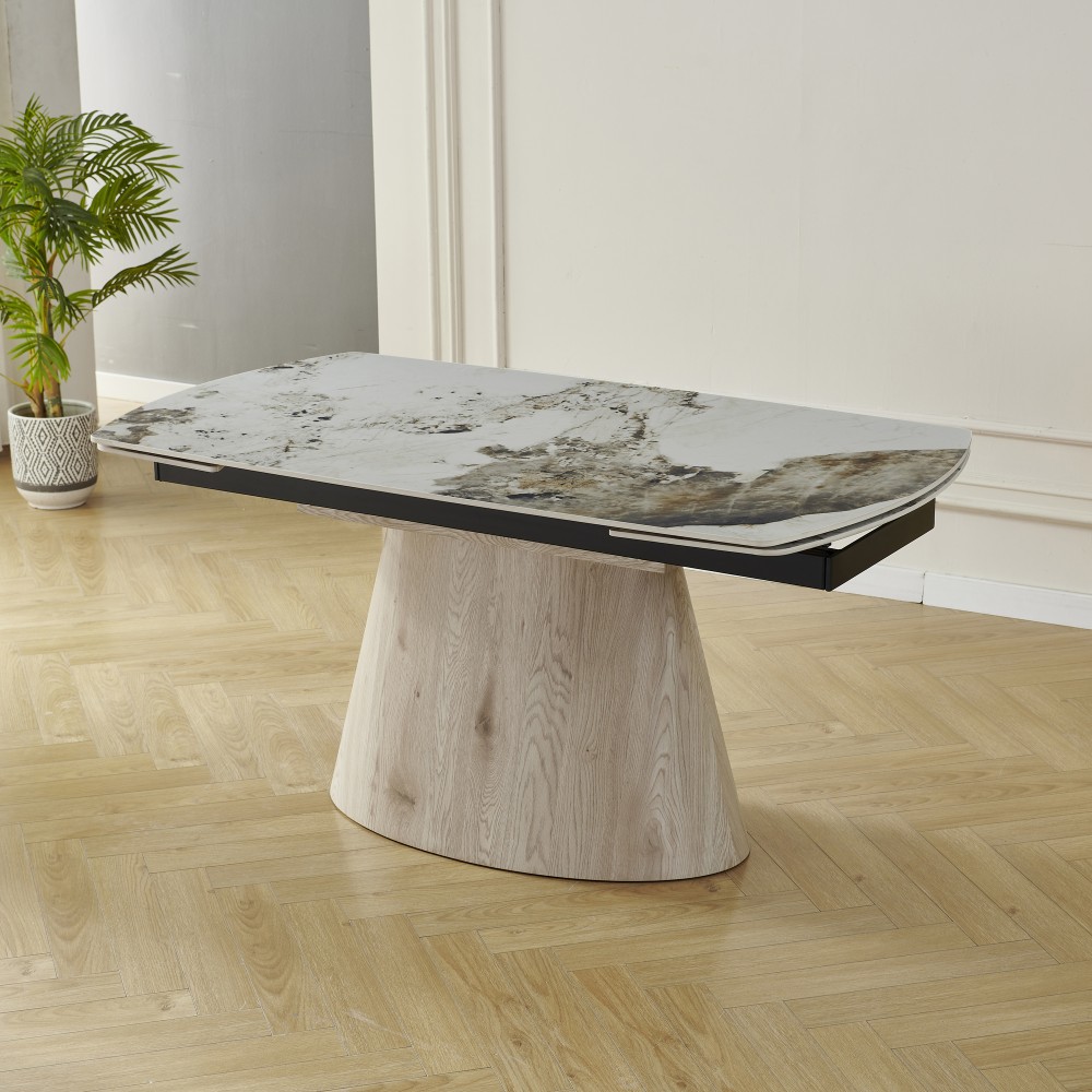 Модель оснащена надійною системою трансформації, що дозволяє збільшити довжину столу з 160 см до 220 см завдяки двом вставкам по 30 см. Це робить стіл Clement-T wood ідеальним вибором як для повсякденного використання, так і для прийому гостей.