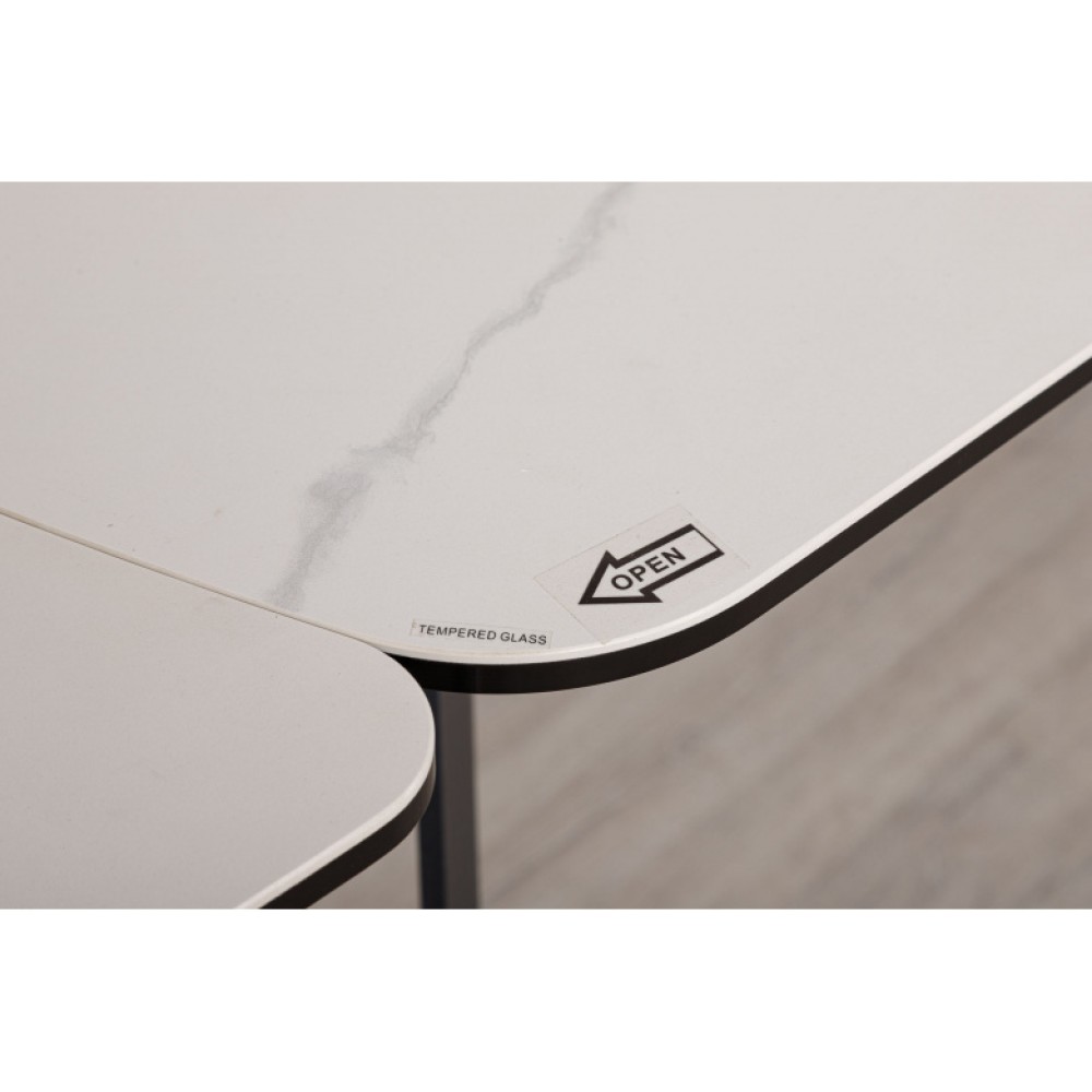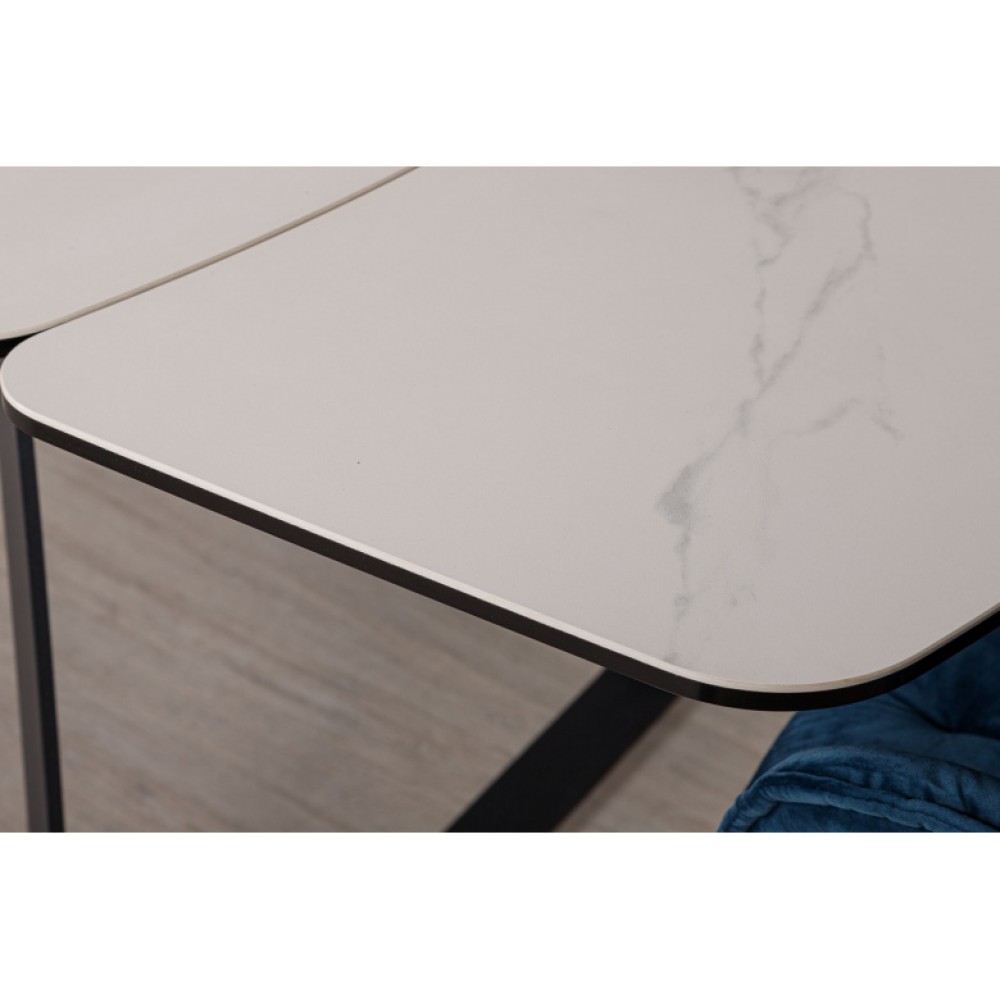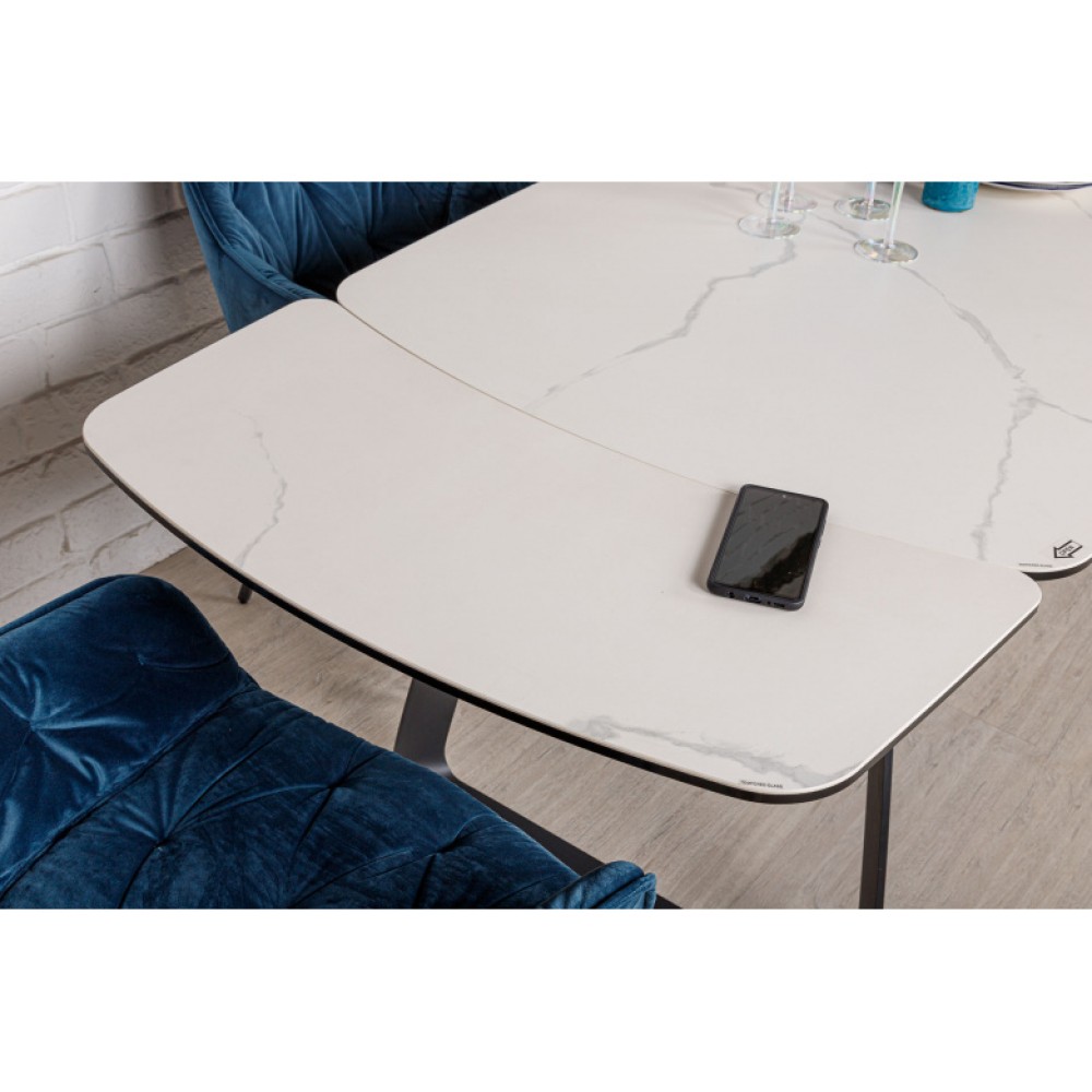 Стільниця виконана з керамічної плити, на поверхні якої передається малюнок натурального каменю. Перевагою такого матеріалу вважається надійність і довговічність. Плита вирізняється стійкістю до подряпин, перепадів температур і впливу агресивних засобів для чищення.