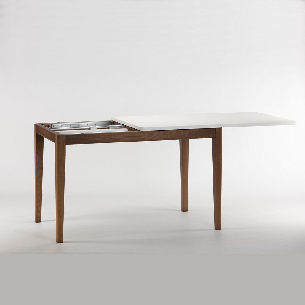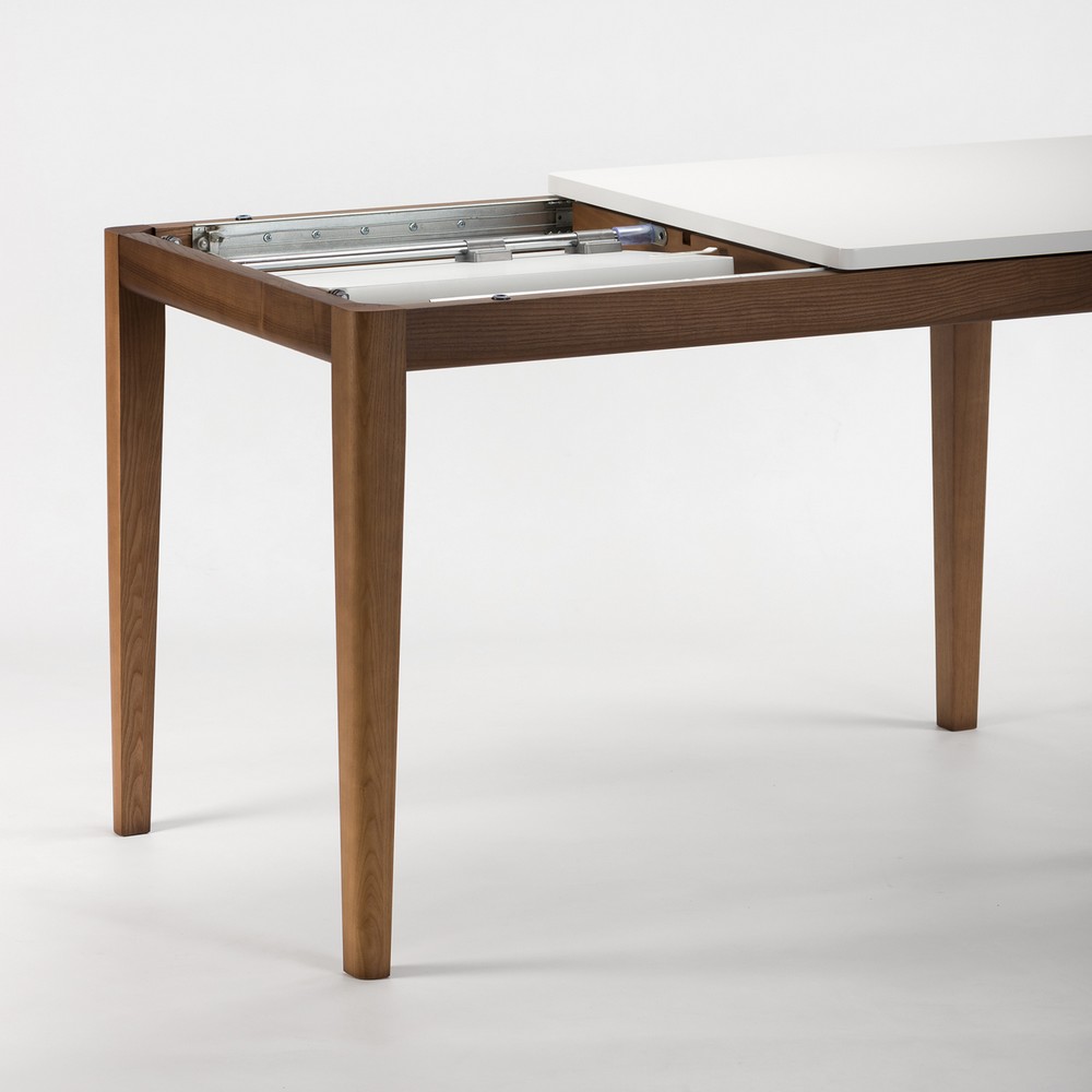 Розкладний обідній стіл Фішер для кухні, вітальні або затишного ресторану. Особливість столу - мінімалістичний стиль та незвичайний розсувний механізм. Можна комбінувати різні кольори каркасу та стільниці, створюючи свій неповторний дизайн столу. Довжина столу у складеному стані 120 см, у розкладеному 170 см.