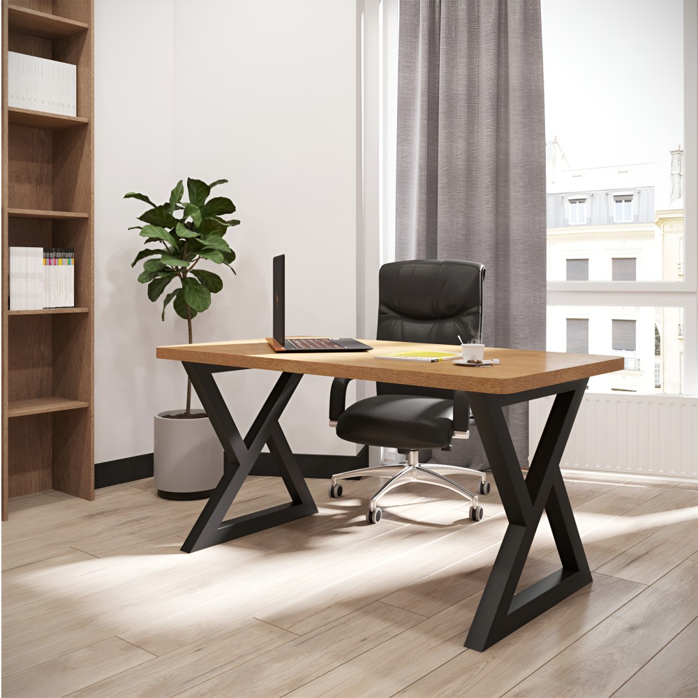 Стільниця виготовлена з ДСП завтовшки 32 мм. Основа столу виконується з металевої труби різної товщини: 50х25 мм, 60х60 мм та 80х40 мм.